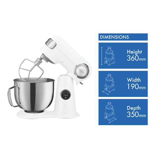 Additional Features LED Digital display, Countdown timer, Pre-programmed recipe feature. The attachments hub allows you to turn your mixer into an all round kitchen assistant. Purchase optional food pep hub attachments including: pasta extruder, pasta roller and cutter, ice-