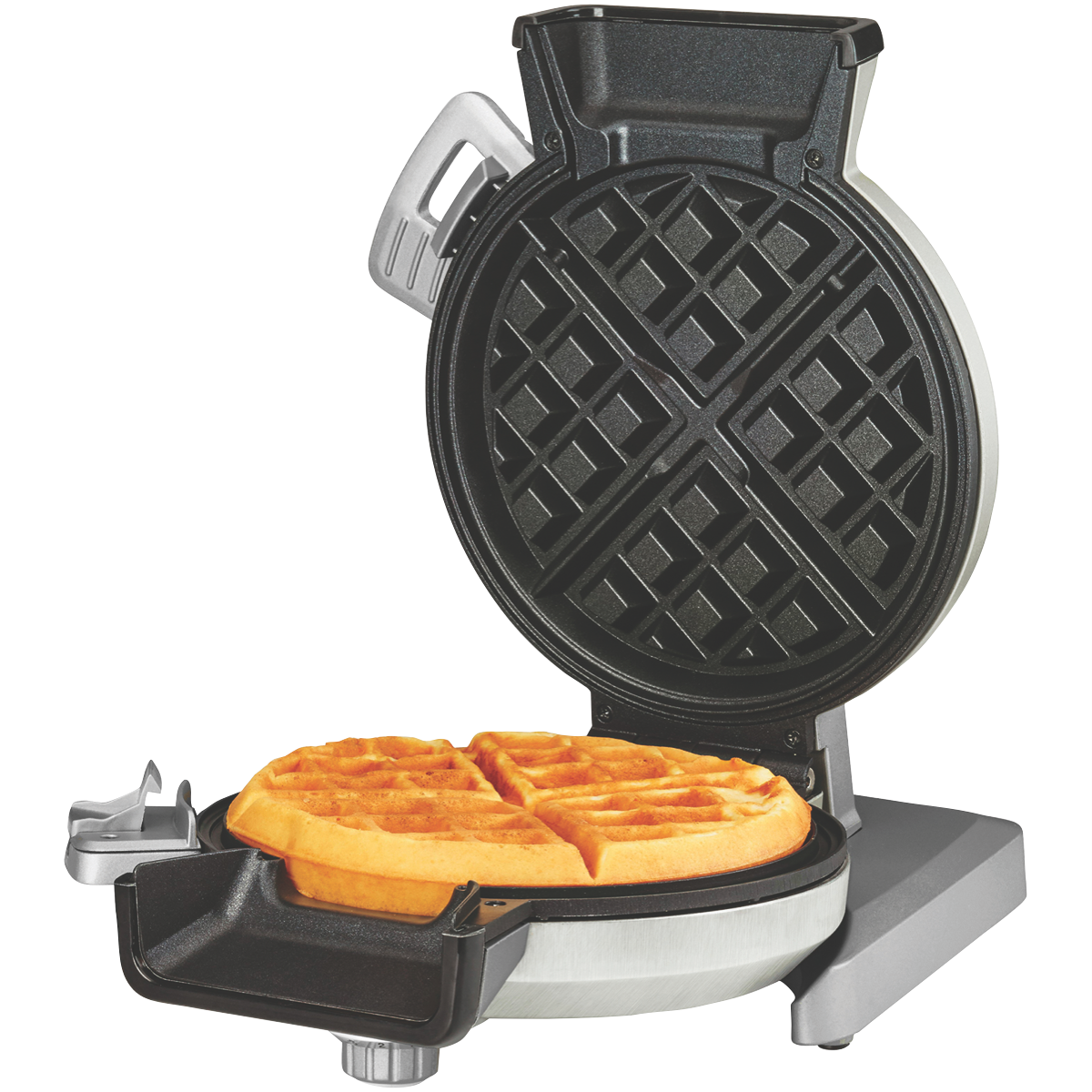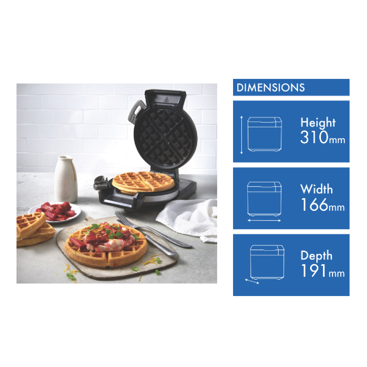 Indulge in delicious homemade waffles with the Cuisinart Vertical Waffle Maker. This versatile kitchen appliance lets you effortlessly create fluffy golden waffles to perfection. The premium nonstick plates ensure easy release while the five adjustable browning controls allow you to customize waffles just the way you like. The indicator lights let you know when the waffle maker is ready for baking and again when your waffles are cooked to perfection. The vertical design takes up minimal counter space for compact storage when not in use. Enjoy waffles for breakfast dessert or anytime in between with this must-have for any home chef. With dimensions of 191mm length by 166mm width by 310mm height this handy appliance will be your new go-to for sweet and savory waffles. The manufacturer's part number for this product is WAF-V100XA. Bring home the Cuisinart Vertical Waffle Maker to unlock a world of delicious recipes.