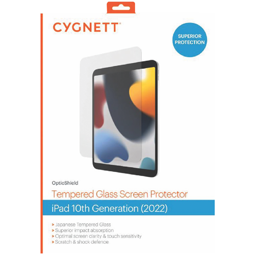 Protect your 10.9-inch iPad 10th Generation with this clear screen guard by Cygnett. This thin yet durable screen protector shields your iPad's display from scratches and scuffs while maintaining the device's responsive touchscreen capabilities. The tempered glass construction preserves your iPad's high-definition viewing experience while safeguarding the screen from daily wear. With a precise fit and easy bubble-free installation this screen guard offers seamless edge-to-edge coverage for your iPad's expansive 10.9-inch display. Give your iPad the protection it deserves against scratches and impacts while retaining flawless visibility and touch responsiveness with this crystal clear screen guard by Cygnett. The manufacturer's part number for this product is CY4392CPTGL. Consider picking up this screen guard to keep your iPad looking pristine.