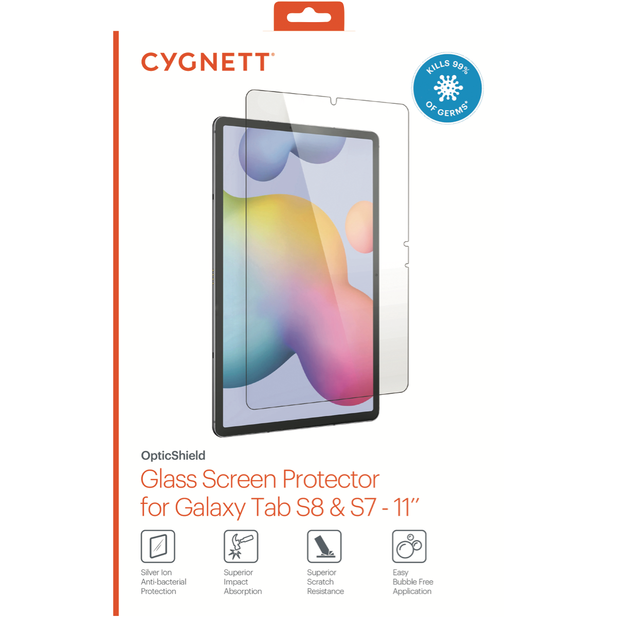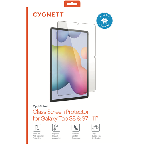 Protect your Galaxy Tab S7 with the Cygnett Galaxy Tab S9/S8/S7 Glass Screen Guard. This clear screen protector shields your tablet's display from scratches and cracks while maintaining full touchscreen functionality. Precision-cut for a flawless fit the protector covers the entire screen edge-to-edge without interfering with swiping or gestures. The tempered glass construction resists fingerprints and smudges to keep your screen looking pristine. At just 0.33mm thick you'll barely notice it's there thanks to the ultra-slim profile. Installation is a breeze with the included accessories like dust removal stickers and wet wipes. The screen protector is backed by Cygnett's 2 year warranty so you can enjoy long-lasting protection. For a virtually invisible shield that preserves touch sensitivity on your Galaxy Tab choose the Cygnett screen guard. The manufacturer's part number for this product is CY3419CPTGL. Check out this screen protector to keep your tablet display safe from harm.