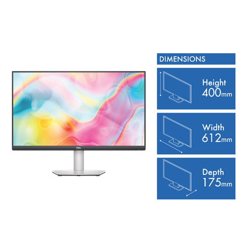 Discover a vivid viewing experience with the Dell 27 USB-C QHD Monitor. This sleek monitor delivers stunning 2560 x 1440 resolution on a crisp 27 LED IPS display letting you see your content in captivating quality. With quick 5ms response time and AMD FreeSync technology action scenes and gameplay stay smooth and responsive. Tilt pivot swivel and adjust the height to find your ideal viewing position. Connectivity is a breeze with dual HDMI DisplayPort and audio out. See your movies photos documents and more in excellent detail on this Dell monitor. Designed with thin bezels on three sides the clean aesthetic looks great in any workspace. Plus Dell ComfortView Plus reduces harmful blue light emissions for comfortable all-day viewing. With a 3-year warranty for peace of mind this Dell monitor is the perfect upgrade for both work and entertainment. The manufacturer's part number for this product is S2722DC. Discover if this Dell monitor is right for you today.