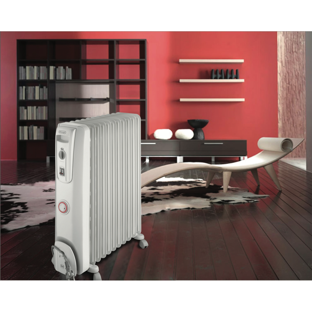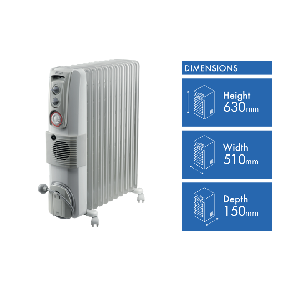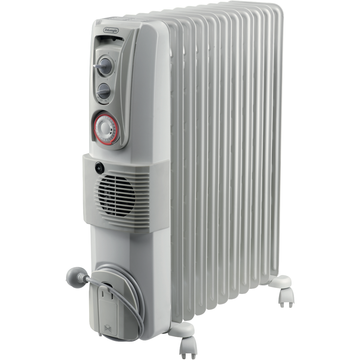 Bring comforting warmth to any room this winter with the DeLonghi 2400W Oil Column Heater. This sleek portable electric heater provides powerful heating with its 2400W output and 3 heat settings to warm any space. The slim space-saving column design with grey finish looks stylish in both traditional and contemporary homes. It includes a 24 hour programmable timer to schedule customized heating times ensuring a cozy temperature when you want it. The additional 500W fan boosts heat circulation for uniform warmth throughout the room. Special thermal slots in the fins enhance heat distribution while lowering surface temperatures for added safety. With anti-frost functionality safety tip-over switch and easy roll wheels this heater offers convenient heating you can rely on. Perfect for bedrooms living rooms and home offices the DeLonghi Oil Column Heater with Timer will keep you cozy all winter long. The manufacturer's part number for this product is DL2401TF. Check out this winter essential today for your heating needs.