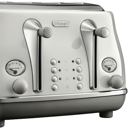 Start your mornings right with the elegant DeLonghi Icona Capitals 4 Slice Toaster in stunning Sydney White. With 1800 Watts of power this sleek toaster can evenly toast up to 4 slices of bread at a time. The progressive electronic browning controls allow you to achieve the perfect level of golden-brown toastiness while the high lift lever makes it easy to remove even small slices of bread. The removable crumb tray ensures effortless cleaning. Reheat and defrost functions provide flexibility for reheating toast or defrosting frozen bread. This DeLonghi toaster features neon indicator lights for all functions so you can monitor progress at a glance. With a compact footprint measuring 300mm wide by 340mm deep it will look fantastic on any kitchen benchtop. The durable stainless steel body promises longevity while the 2 year warranty provides peace of mind. Give your mornings an elegant touch with the DeLonghi Icona Capitals 4 Slice Toaster in Sydney White. The manufacturer's part number for this product is CTOC4003W. Make your purchase today for perfectly toasted bread every morning.