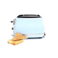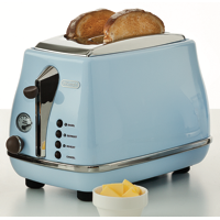 This DeLonghi toaster has a 2 slice capacity. It has variable browning control so you can toast dark medium or light. The DeLonghi CTO2003VAZ has high lift functionality. Clean out crumbs easily with its removable crumb tray. The DeLonghi toaster has a blue finish. You can toast crumpets just the way you like them with this DeLonghi toaster.