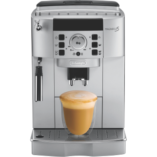 Prepare freshly-ground espresso coffee at the touch of a button with the DeLonghi Magnifica S Automatic Coffee Machine. Simply choose from a range of short and long espresso coffee options from the Magnifica S control panel menu or tailor the brewing parameters to suit your coffee preferences. Create your one-touch beverage with the help of the coffee machine's integrated coffee grinder. It freshly grinds the precise amount of coffee beans for the brewing process then precisely adds water to create delicious aromatic espresso with a velvety crema. Plus for your milk-based coffee recipes use the machine's rapid heat-up steam wand giving your latte or macchiato that cafe-style rich creamy froth. Create barista-quality beverages with the DeLonghi Magnifica S Fully Automatic Coffee Machine.
