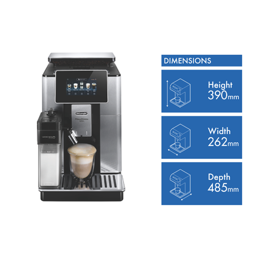Create professional grade coffee from the comfort of home using the Delonghi PrimaDonna Soul Automatic Coffee Machine ECAM61075MB. Never choose between your coffee machine and your favourite coffee beans; Bean Adapt Technology automatically changes its settings to suit including modifying the grinding level and infusion temperature to provide the best tasting coffee. The intuitive 4.3-inch TFT Touch display offers your own personalisation when create your daily caffeinated beverage; create profiles customise coffee recipes and tailor your coffee to suit your preferred taste. The 500ml LatteCremasystem includes a double thermal wall design that will keep your milk staying cooler for longer without refrigeration. Also the easy to refill top makes life easy when creating perfectly textured milk. Use a variety of milk products including plant-based alternatives when preparing your coffee. Store and easily refill your preferred coffee beans with the large capacity bean hopper. The Coffee Link App can start preparing your coffee in only a few taps; adjust parameters recipes and processes to create your favourite coffee every time. The PrimaDonna Soul Automatic Coffee Machine offers up to 21 different coffee recipes to try: from your traditional Long Black and Cortado to Italian Espresso's and Brew-over-Ice. Also Delonghi Technology guarantees the ideal extraction temperature between 88-degrees Celsius and 96-degrees Celsius every time you use the device. The increased functionality of the cleaning program means washing up is effortless with easily removable dishwasher safe components your coffee machine will stay hygienic and will last you for longer.