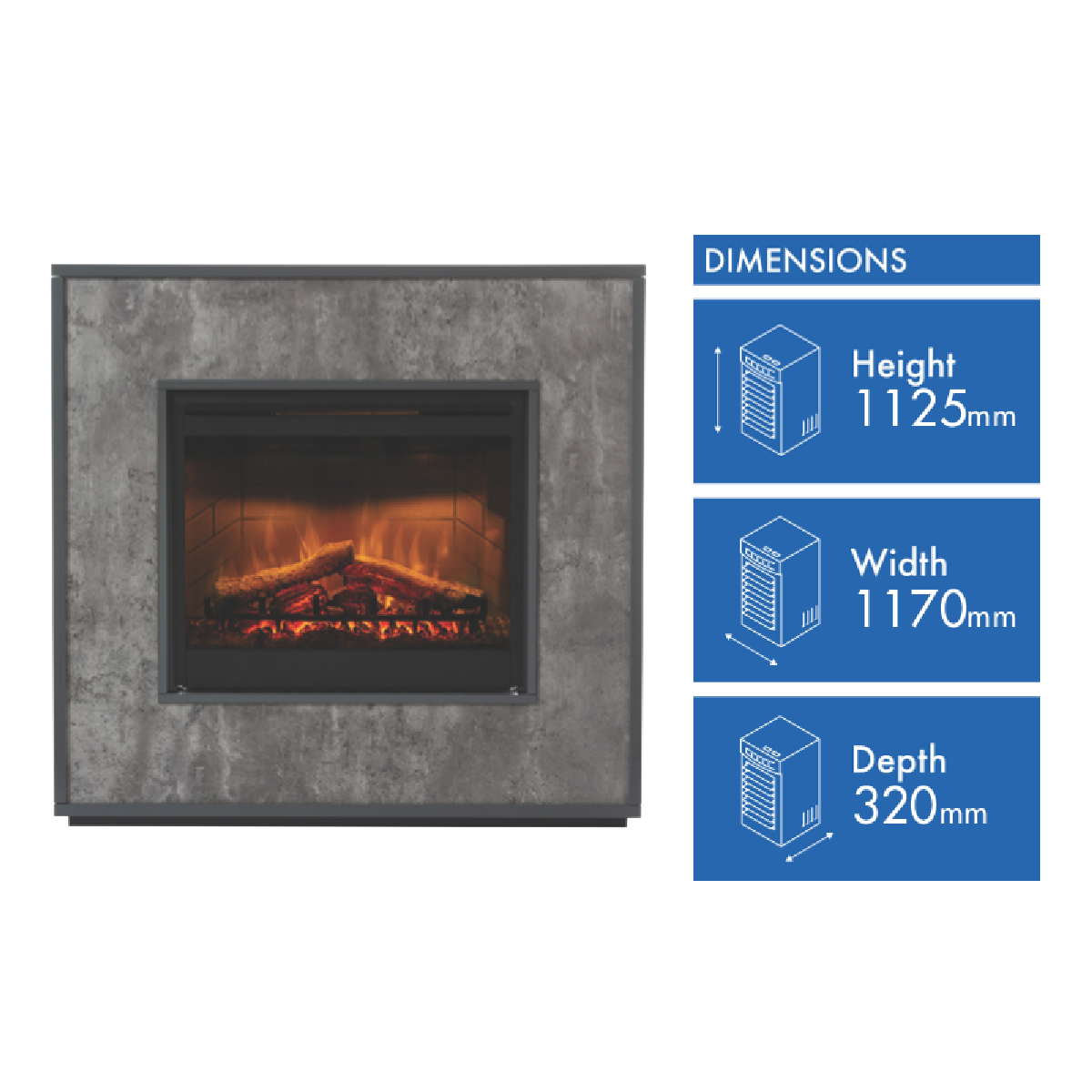 Immerse yourself in cosy warmth and flickering flames with the Dimplex 2kW Atlantic Mantle Electric Fireplace. This sleek electric fireplace provides 2kW of heating power across two settings easily adjustable via the included multi-functional remote. Its LED flame effect can be used independently to set the mood no heat required. With its contemporary grey and concrete effect finish this fireplace seamlessly blends into modern decor. Installation is a breeze with its slim 320mm depth. Circulate warm air on chilly evenings or enjoy the ambience of the realistic LED flames year-round. At 1170mm wide 1125mm high and 320mm deep the Atlantic Mantle fireplace's compact footprint fits wonderfully in apartments and smaller living spaces without compromising on style. Dimplex prioritizes safety so you can relax knowing this fireplace is cool to touch and safe around children. The manufacturer's part number for this product is ATC20-AU. Bring cozy flickering warmth to your home with the Dimplex Atlantic Mantle Electric Fireplace.