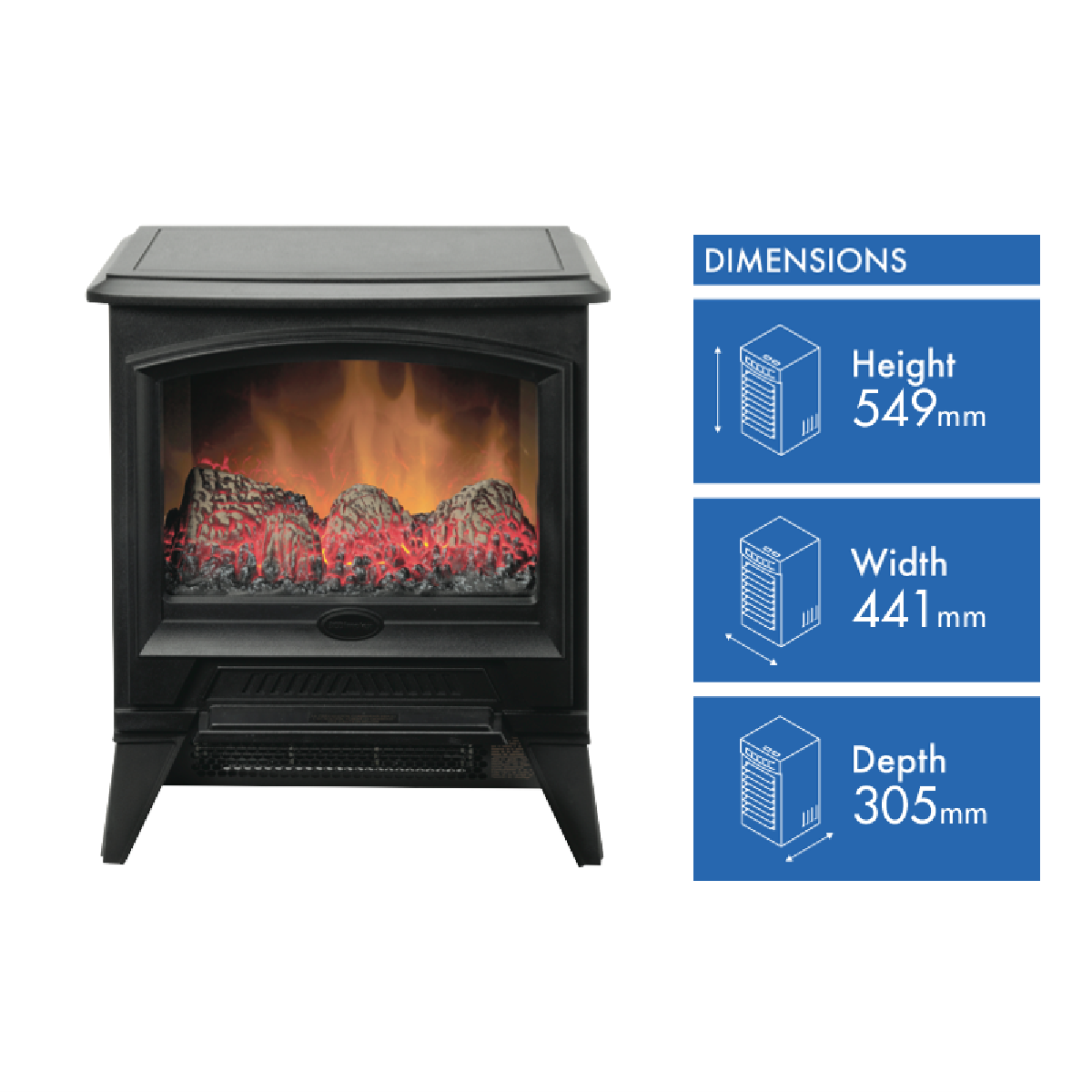 Additional Features Optiflame LED effect with lava rock style fuel bed, Thermal safety cut-out