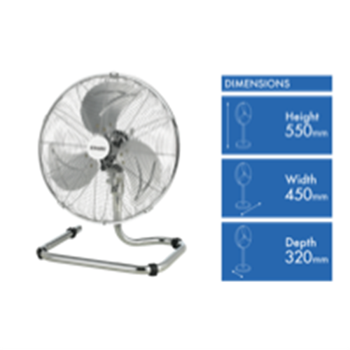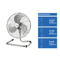 This Dimplex portable fan is a floor fan. Cool a room fast with its 3 speed settings. The Dimplex DCFF40C has a 400mm blade diameter. It features a 550mm height a 450mm depth and a 320mm width. The Dimplex portable fan has a chrome finish. Stay cool wherever you are in the house with help from this Dimplex portable fan.