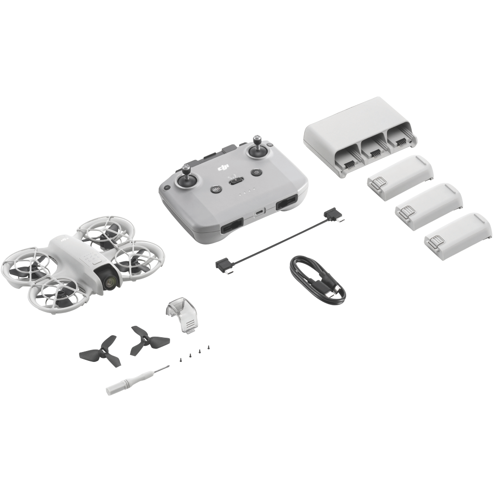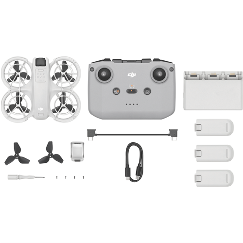 Capture life's adventures from a whole new perspective with the DJI Neo Fly More Combo. This compact and lightweight camera drone packs a powerful punch featuring a 1/2-inch image sensor that delivers stunning 12MP photos and 4K Ultra HD video. With a max flight range of 2000m and an 18-minute battery life you can explore further and longer than ever before. The combo also includes essential accessories like spare batteries propellers and a handy carrying case. Plus intelligent features like Return to Home make flying a breeze even for beginners. Whether you're a seasoned pro or just starting out the DJI Neo Fly More Combo (6292316) has everything you need to take your aerial photography to new heights. Covered by a 1-year manufacturer's warranty for added peace of mind.