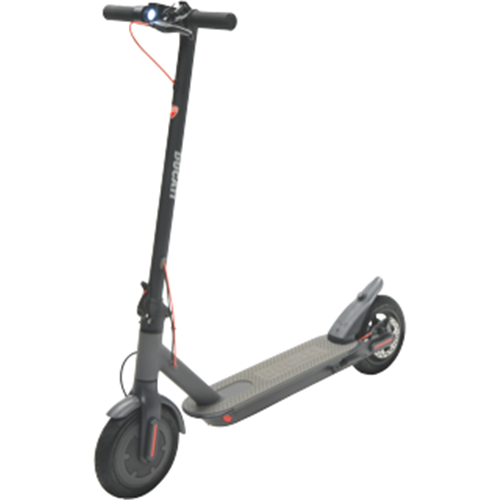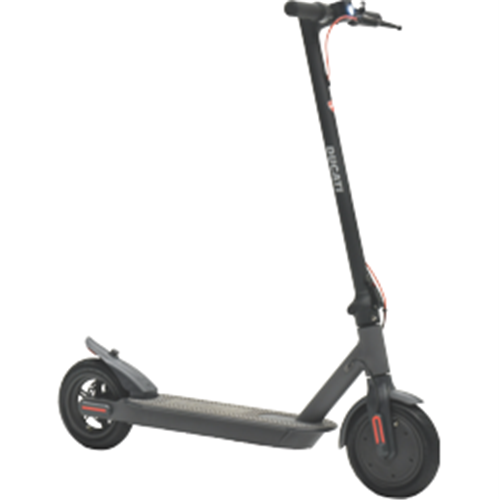Travel with style with the practically and sustainability of the Ducati Pro-I Evo e-Scooter DU-MO-210001. It s black and grey Aluminium Alloy Frame and 8.5" front and rear tires create a modern and bold aesthetic design. See your E-Scooter speed and battery life in real time using the vibrant LED colour display. Using the compatible Integrated User App you can monitor the Pro-I Evo scooter performance and location at any time. The anti-vibration mechanism and 8.5" inner air-tube wheels reduces ground vibrations and prevents uneven surfaces from impacting the travelling experience. Easily store your Ducati Pro-I Evo E-Scooter with the inbuilt easy folding mechanism which makes carrying and collapsing down for storage easy. Powering your travel experience is the 350W brushless electric motor that offers low scooter maintenance and silent operation. Glide along the streets with active cruise control; it retains your chosen set travel speed without the need to hold down the accelerator.
