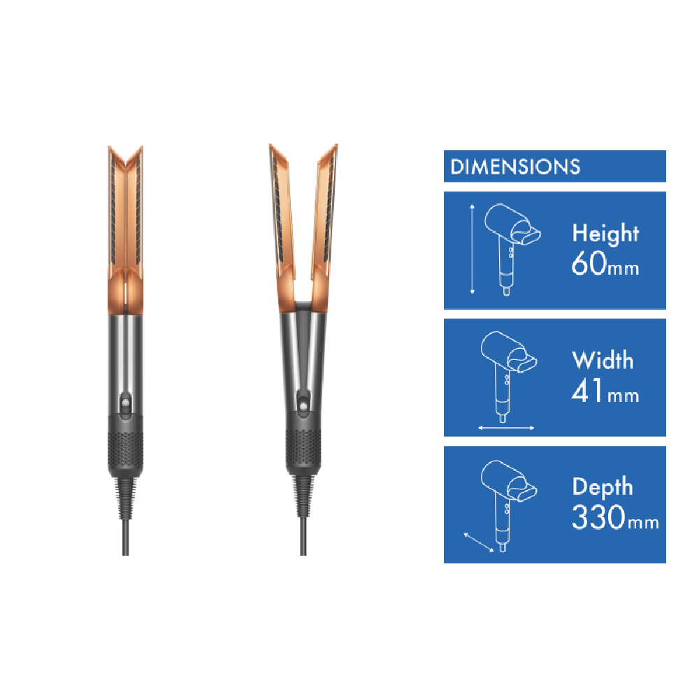 Transform your hair styling routine with the Dyson Airstrait Straightener. This clever device takes your hair from wet to perfectly straight with no heat damage - just powerful airflow that dries and straightens at the same time. The intuitive system automatically adjusts airflow when your hair is between the arms for quieter more efficient styling. You can lock the arms to pre-dry roots and add volume then unlock to straighten. With three speed settings an LCD screen showing your settings and smart safety features that pause after 3 seconds of inactivity it's designed for easy worry-free use. The lightweight 0.94kg design and 1.98m cord give you plenty of flexibility while styling. Comes with a velvet heat mat and 2 year warranty. Model number: 408204-01.