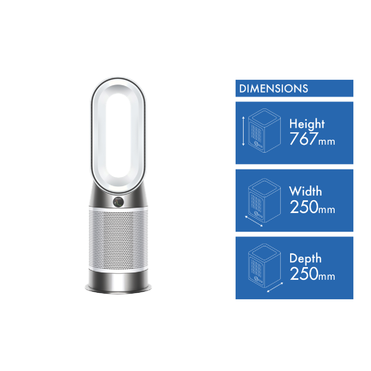 Dyson purifiers combine intelligent sensing with an advanced HEPA H13 filtration system that captures 99.95% of particles as small as 0.1 microns.2 And only Dyson purifiers have powerful Air Multiplier technology to purify the whole room.11. Tested for air projection purification coverage in an 81m3 room and heating performance in a 35m3 room.2. Tested for filtration efficiency at 0.1 microns (EN1822). Gas capture rates may vary.