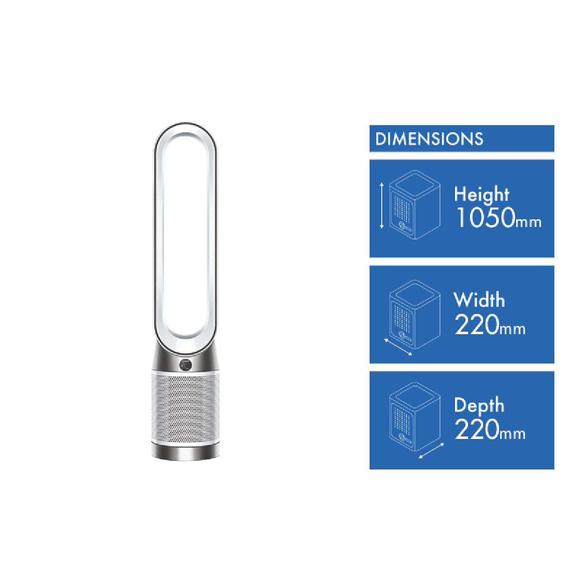Dyson purifiers combine intelligent sensing with an advanced HEPA H13 filtration system that captures 99.95% of particles as small as 0.1 microns.2 And only Dyson purifiers have powerful Air Multiplier technology to purify the whole room.11. Tested for air projection purification coverage in an 81m3 room.2. Tested for filtration efficiency at 0.1 microns (EN1822). Gas capture rates may vary.