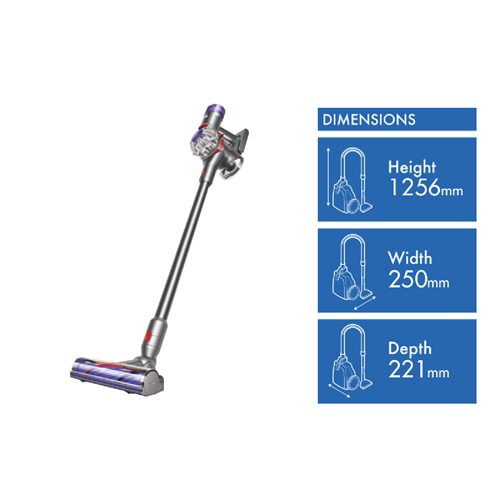 Dyson V8 Cordless Vacuum (394437-01) is powered by the Dyson digital motor V8 spins up to 107000rpm to create powerful suction for versatile cleaning. Up to 40 minutes of fade free power(1). Whole machine filtration captures 99.97% of particles down to 0.3 microns(2). Motorbar(TM) cleaner head has de-tangling vanes that automatically clear wrapped hair from the brush bar as you clean. Hair screw tool Picks up hair. Fast. With Dyson anti-tangle technology. Hygienic bin emptying no need to touch the dirt just pull the lever to release it into your bin. Quickly transforms to a handheld vacuum cleaner and back again in just one click. Two power modes switch between Max mode for up to 5 minutes of high power and Powerful mode for longer day-to-day cleaning. Lightweight and ergonomic it easily reaches up high with one smooth motion. Disclaimers: (1) In powerful mode with non-motorised tools. (2) Filtration tested against ASTM F3150 tested in boost mode by independent third party SGS-IBR Laboratories US in 2020
