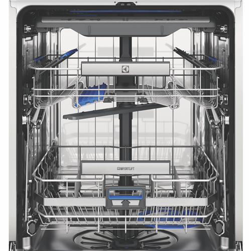Step into a world of sparkling clean dishes with the Electrolux 60cm Built Under Dishwasher. This stainless steel dishwasher boasts a generous 14 place setting capacity 8 wash programs and an energy rating of 3.5 stars for efficient performance. With adjustable upper and lower racks specialized foldable glass racks and soft spikes to protect delicate stemware this dishwasher accommodates all your dishes and glassware. The ComfortLift lower rack smoothly glides out when opened and folds down so loading and unloading is a breeze. An AirDry feature circulates air through the dishwasher to allow moisture to evaporate naturally. A Beam on Floor indicator projects a light onto the floor so you know when the cycle is running. With a noise rating of just 44 decibels this dishwasher operates quietly. The Quick 30 minute wash saves time while the ECO 180 minute cycle conserves the most energy and water. This built under dishwasher is designed to fit flush with your cabinetry for a seamless look. Contact us to learn more about bringing home this convenient and user-friendly Electrolux dishwasher today. The manufacturer's part number for this product is ESF97400ROX.