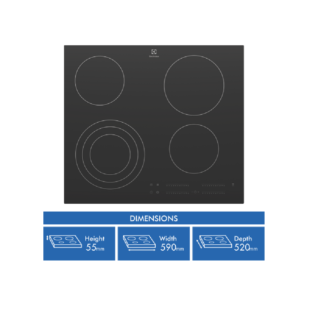 • Electric 60cm 4 zone cooktop with touch and slide controls
