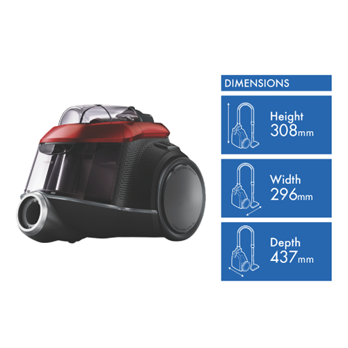 Tackle all your cleaning tasks with ease using the Electrolux PURE C9 Animal Bagless Vacuum. This powerful 1700W barrel vacuum comes in a stylish chilli red color and offers exceptional cleaning for homes with pets. The bagless design features a generous 1.6L dust bin capacity so you won't have to empty it frequently. With a 12M maximum cleaning reach you can easily clean large areas in your home without having to change power outlets frequently. Weighing only 5.9kg the PURE C9 Animal is lightweight and maneuverable. This barrel vacuum is designed to make vacuuming effortless with its compact 296mm width and 437mm depth. Enjoy spotless floors and furniture with the 2 year warranty from Electrolux. The PURE C9 Animal vacuum helps you keep your home fresh and clean every day. The manufacturer's part number for this product is PC91ANIMAT. Check out the Electrolux PURE C9 Animal Vacuum today for a cleaner home.