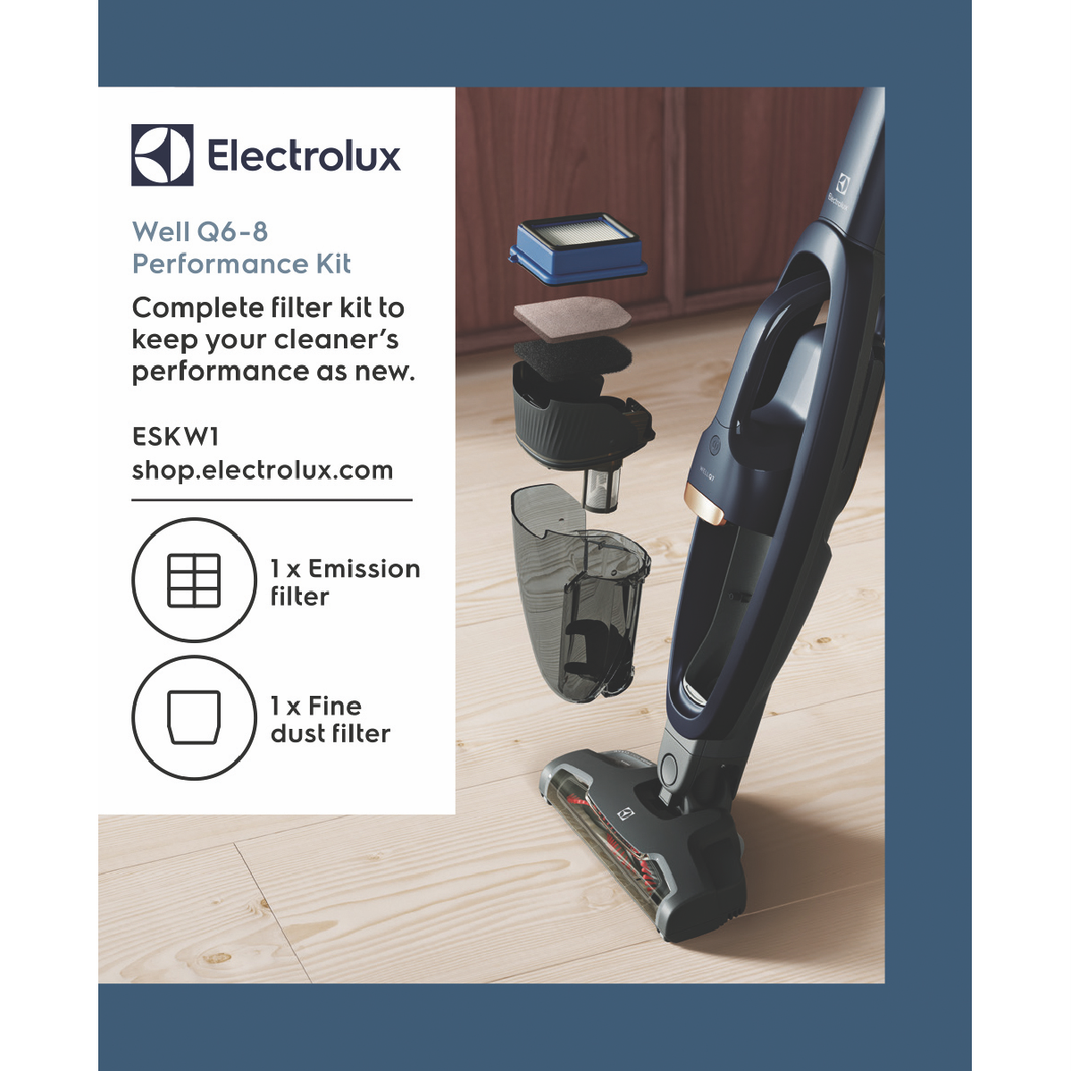 Breathe new life into your Well Q6-8 vacuum with the Electrolux Well Q6-8 Performance Kit. This vacuum filter kit helps maintain your vacuum's suction power and filtration system for optimal cleaning performance. The manufacturer's part number for this product is ESKW1. For long-lasting vacuum power upgrade your Well Q6-8 with this genuine Electrolux filter kit today.