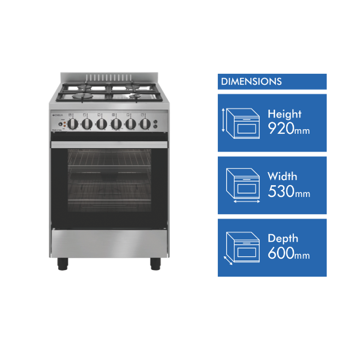 Emilia 53cm Stainless Steel Gas Cooker