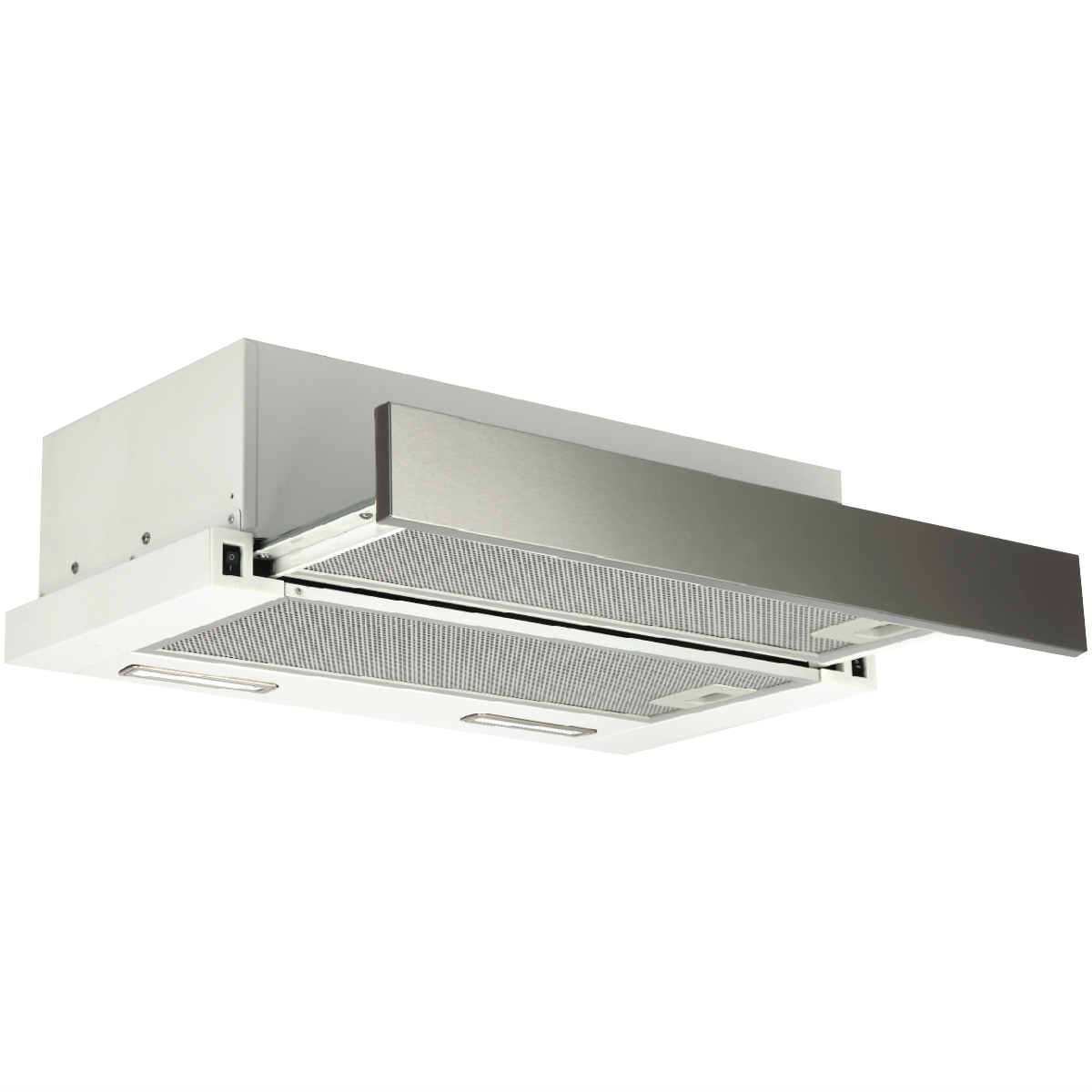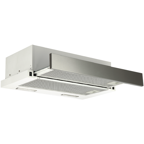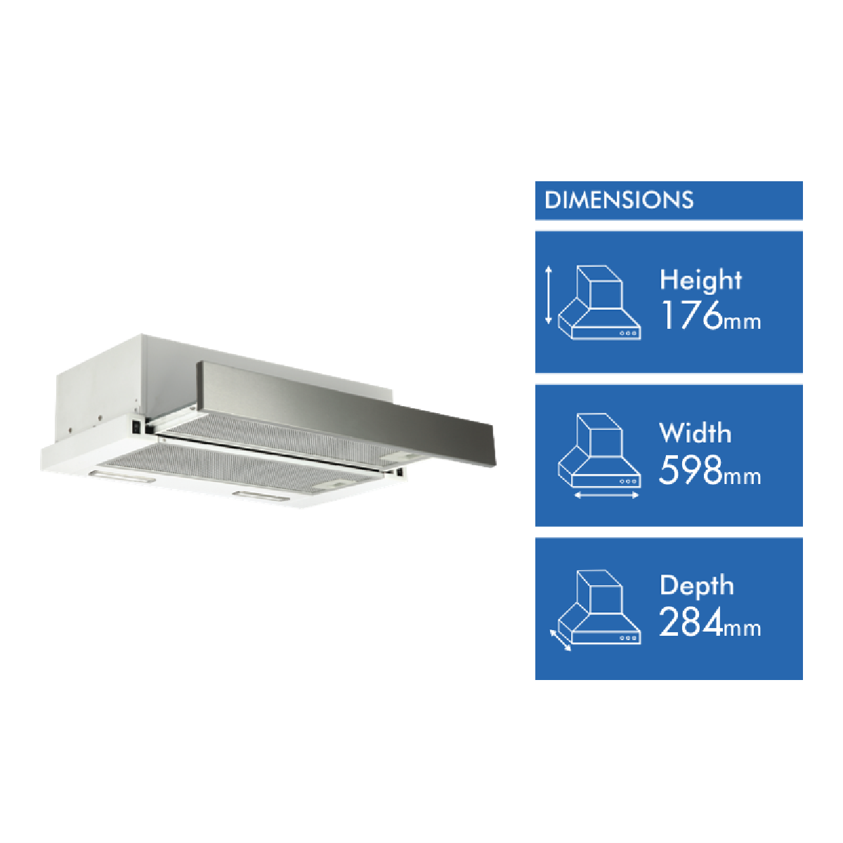 Bring sleek style and superb extraction to your kitchen with the Emilia 60cm Slideout Rangehood. This stainless steel appliance makes a striking statement above stoves and cooktops with a streamlined profile that enhances any modern decor. Equipped with 210 cubic meters per hour of extraction capacity two LED lights and two aluminum mesh filters this rangehood effectively clears smoke grease odors and more from the air when cooking. The slide-out design provides convenient access for maintenance while the rocker switch offers effortless control over the two fan speeds. Ducted or recirculated installation provides flexibility. At just 43 decibels operation is quiet. With durable stainless steel construction handy aluminum filters and bright LEDs this rangehood is made to last while keeping your kitchen fresh and well-lit. It comes with a 2 year manufacturer's warranty for peace of mind. The manufacturer's part number for this product is CK60FRF. See how the Emilia can keep your cooking space clear and stylish.