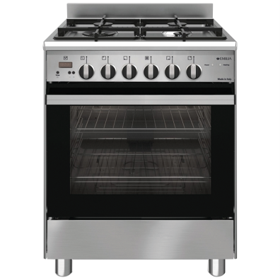 Create amazing and delicious home cooked meals using the Emilia 60cm Stainless Steel Duel Fuel Upright Cooker EM664GE. Have access to wide selection of oven cooking functions to prepare a wide variety of different foods. Using less gas and an improved heat distribution is the latest in Emilia's wok burner design available with this Stainless Steel Duel Fuel Upright Cooker. Using low porosity titanium enamel prevents food residue from sticking making the cleaning process easier. If the burner flame is put out so does the gas as well; the safety valve prevents gas flow from dispersing until the burner is reignited. Timing your cooking cycles and presenting the time of day is the digital clock and timer.
