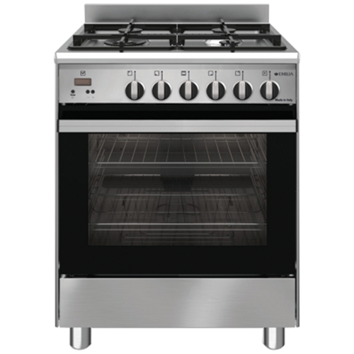 Experience the joy of cooking with the Emilia 60cm Stainless Steel Gas Upright Cooker. This freestanding oven is designed to be the centerpiece of your kitchen with its sleek stainless steel finish and stylish knob controls adding elegance to any home. Four gas burners give you versatility to cook multiple dishes at once while the 67 liter capacity oven has four functions - thermostat static gas fan assisted gas and grill - to handle anything from roasting and baking to broiling. The closed grilling compartment lets you grill meats and veggies to perfection. This oven comes equipped with two side racks and wire shelves a grill tray and insert and cast iron trivets to maximize cooking space. The safety valve flip down storage compartment and double glass insulated door provide added peace of mind. With a maximum temperature of 260 degrees Celsius this gas cooker can handle the demands of any recipe. The 10amp plug in makes installation quick and easy in your home. With a 2 year manufacturer's warranty the Emilia 60cm Stainless Steel Gas Upright Cooker will be the workhorse of your kitchen for years to come. The manufacturer's part number for this product is EM664GG. Learn more about the features and specifications today.
