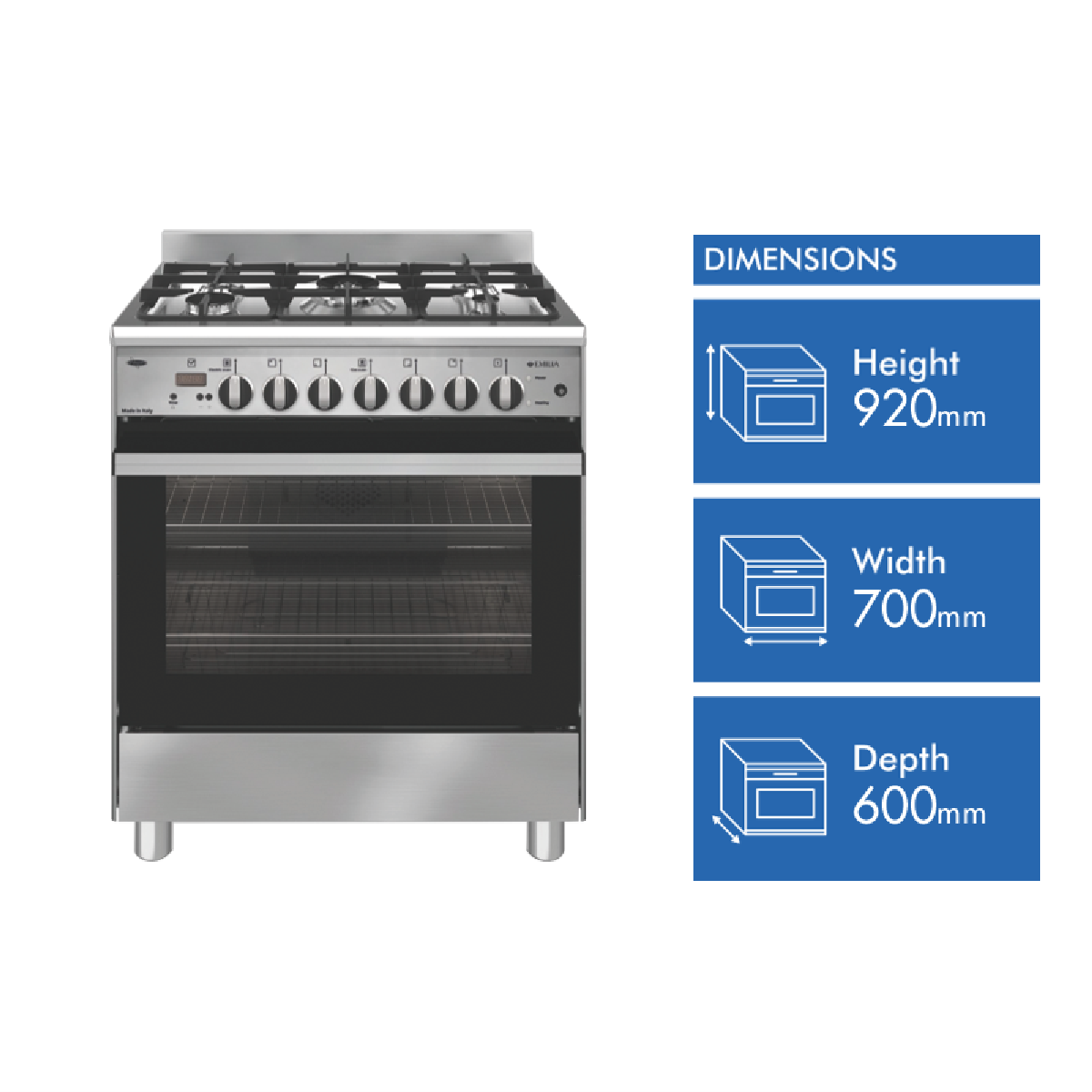 Emilia 70cm stainless Steel Bi Energy Dual Fuel Upright Cooker