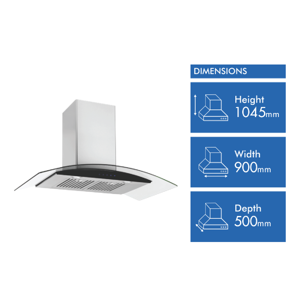 Emilia 90cm Curved Glass SS Canopy Rangehood