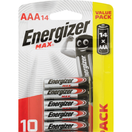 Energise your gadgets with the Energizer Max AAA 14 pack. These non-rechargeable AAA batteries deliver long-lasting power for all your household devices. The 14 battery count ensures you'll always have spares on hand. Made by a trusted brand Energizer Max batteries supply dependable energy when you need it most. Their compact AAA size fits perfectly into remotes toys clocks and more. With leak-resistant construction and reliable shelf life these batteries keep going in storage. Bring convenience to your home with a battery that just keeps on going. Grab this value pack and power up everything from flashlights to game controllers. Never be left without backup power again. The manufacturer's part number for this product is E301040300.