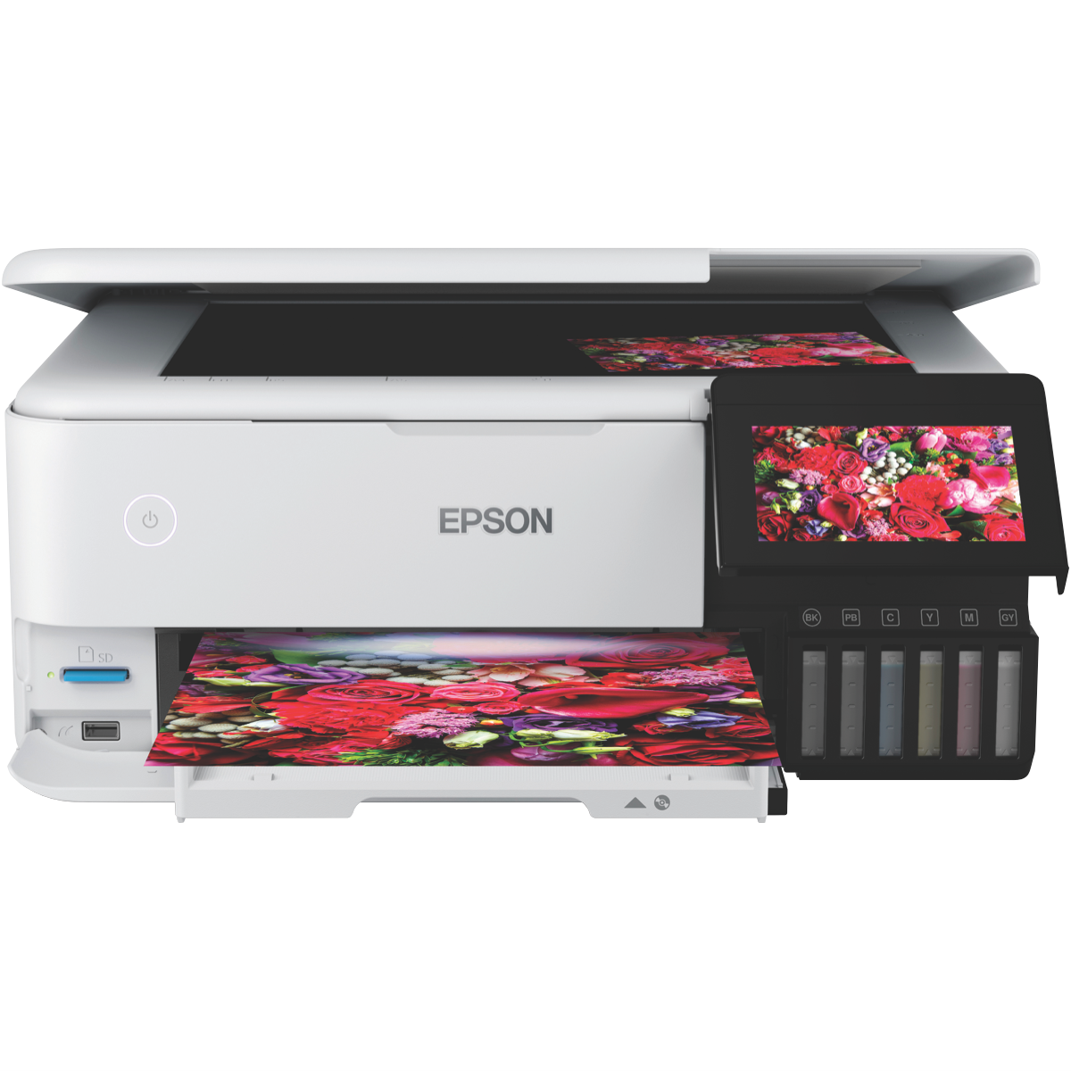 Capture life's precious moments in vivid detail with the Epson EcoTank ET-8500 wireless all-in-one inkjet printer. This versatile machine allows you to print scan and copy with ease handling up to 100 sheets of A4 paper at a time. Thanks to its automatic double-sided printing feature you can conveniently produce professional two-sided documents without having to manually flip pages. Connect wirelessly via Wi-Fi Wi-Fi Direct or USB to start printing and scanning from smartphones tablets and computers. With an initial ink bottle set including black photo black cyan magenta yellow and grey you can produce up to 4500 pages worth of lab-quality photos and documents right out of the box. At just 8.4kg the sleek and compact Epson ET-8500 fits neatly into any home office or workspace. Use AirPrint to print directly from Apple devices or download the Epson app to print from and scan to smartphones and tablets. Capture and archive memories with the ET-8500's scanner producing crisp copies of photos documents and more. Enjoy the benefits of ultra low-cost printing with Epson's replaceable high capacity ink bottles. The Epson EcoTank ET-8500 comes with a 12 month warranty for added peace of mind. The manufacturer's part number for this product is ET-8500. Bring efficiency quality and wireless connectivity home with the Epson ET-8500 all-in-one.