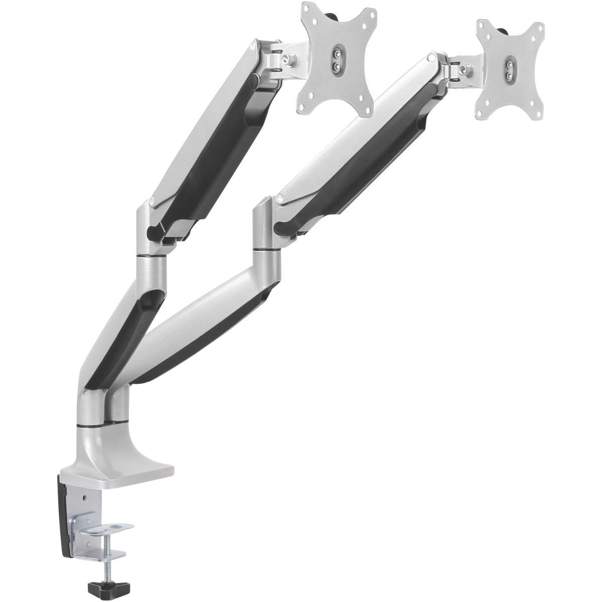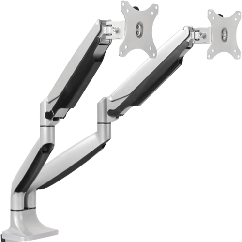 Transform your home office with the Ergovida Gas Spring Dual Monitor Arm. This sleek silver monitor arm perfectly counterbalances dual monitors from 13 to 32 inches allowing you to easily position your screens for ergonomic comfort. The built-in spring gauge 360 rotary VESA plate and cable management create a streamlined setup while the gas spring technology provides smooth effortless adjustability. Mount this monitor arm to your desk or table with the included grommet or C-clamp to maximize your viewing real estate and productivity. With its durable steel construction and generous extension range the Ergovida Dual Monitor Arm enables you to create the ultimate home office command center. The manufacturer's part number for this product is EMA10-C24. Check out this monitor arm to upgrade your workspace today.