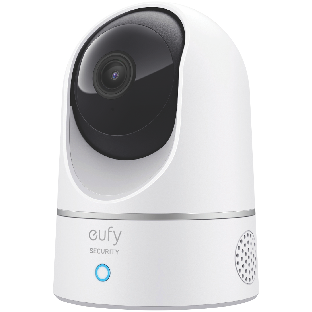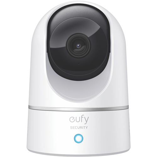 Keep an eye on your home and loved ones from anywhere with the eufy 2K Indoor Pan & Tilt Security Camera. This white security camera records crisp 4MP 1440p video so you can see every detail clearly. With night vision motion detection alerts and two-way audio you'll always know what's happening at home. Just use the eufy Security app to pan and tilt the camera remotely zoom in to see faces and license plates and even talk through the built-in microphone. Thanks to compatibility with Google Assistant and Amazon Alexa you can view live camera feeds with just your voice. Rest assured with one year warranty coverage from eufy. The manufacturer's part number for this product is T8410C24. Check out this home monitoring essential today.