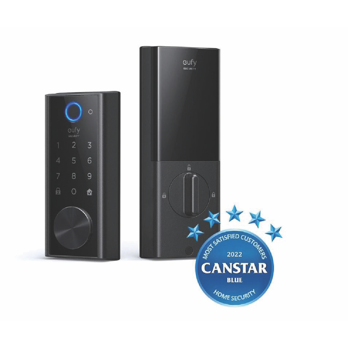 Unlock your door with ease using the eufy Security Smart Door Lock Touch plus WiFi. This innovative black smart lock allows you to conveniently open your door using your fingerprint a security code or your smartphone. With Wi-Fi connectivity and compatibility with voice assistants like Amazon Alexa and Google Home you can control and monitor your front door from anywhere. The advanced fingerprint identification ensures only authorized people like family and friends can enter your home. Packed with features like auto-lock tamper alerts and a low battery notification system this eufy smart lock provides round-the-clock security giving you peace of mind when you're away. Crafted using durable materials and backed by a 1 year warranty this electronic door lock is built to last. Make life more convenient and keep your home safe with the eufy Security Smart Door Lock Touch plus WiFi. The manufacturer's part number for this product is T8520T11. Learn more about this smart home essential today.