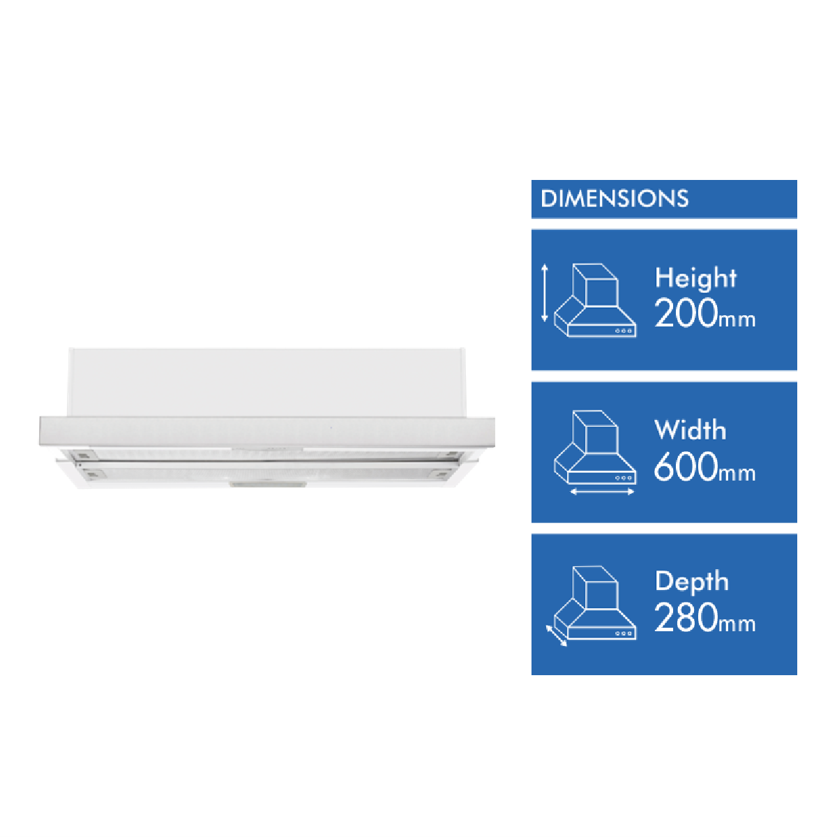 Make your kitchen shine with the Euromaid 60cm Slideout Rangehood. This stainless steel beauty will keep your cooking space fresh and clean with its powerful 440 cubic meters per hour extraction capacity. The twin motor and 3 speed fan offer versatile ventilation control. Slide out the sleek front panel to access the easily washable aluminum grease filters. With halogen lighting and a low 56 decibel noise level you can cook in peace. The 600mm width fits most 60cm spaces. This rangehood makes kitchen ventilation simple with its slider switch controls. The stainless steel finish and grey end caps add durability and visual appeal. Keep your kitchen breezy and steam-free with this ducted rangehood's excellent airflow. Euromaid provides a 2 year warranty for added peace of mind. The manufacturer's part number for this product is RS6S. Check out this rangehood to upgrade your cooking experience today.