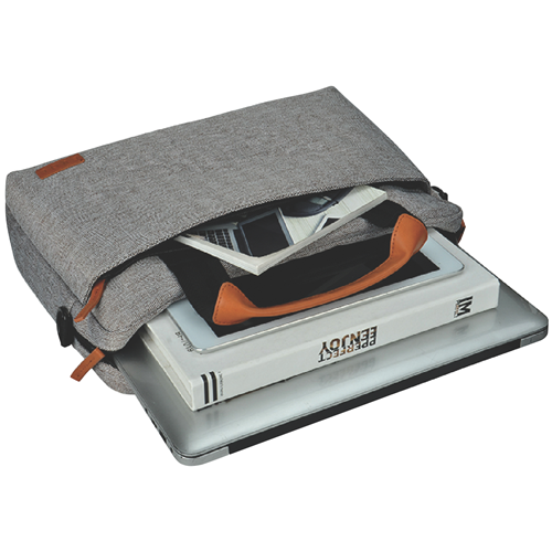Additional Compartments Herringbone textured mixed polyester exterior with faux leather accents