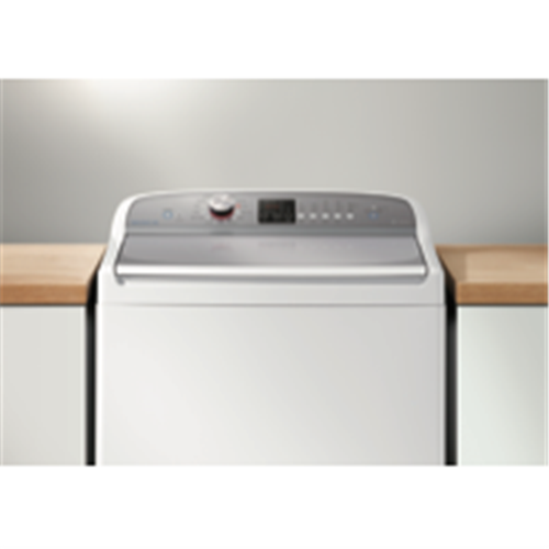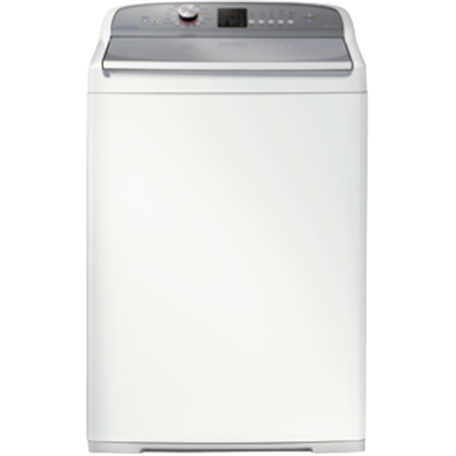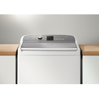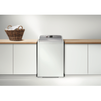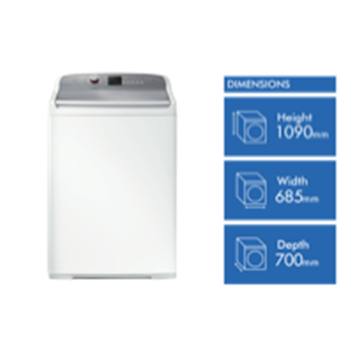 This white Fisher & Paykel top loader washer has a 4 star energy rating for energy bill savings and the capacity to wash 10kg of dry laundry per load so you can wash bedding and clothes for five or more people. It has 12 types of washing programs allowing you to select the setting for best washing results. The white Fisher & Paykel WA1068P1 has a delayed start setting an 1100 rpm maximum spin speed and a 3.5 star WELS water rating. It's 1090mm high 685mm wide and 700mm deep so take careful measurements of where your washer needs to fit leaving space for the lid to open fully and to have a wall-mounted dryer above the open lid if you have limited laundry space.
