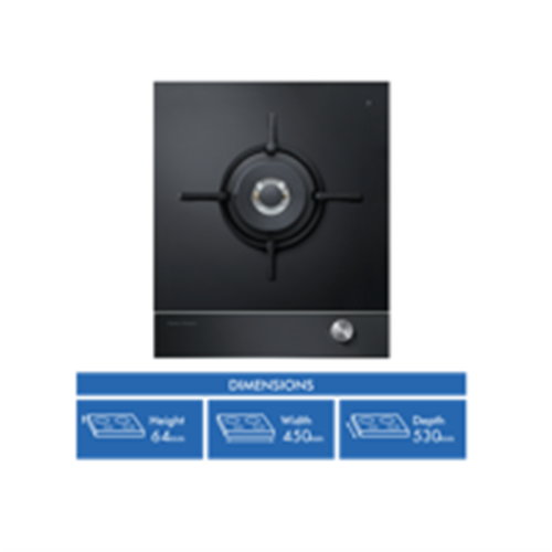 You can cook the way you want to cook with this ceramic glass Fisher & Paykel cooktop's 1 burner. It's LP Gas powered. Plus the ceramic glass Fisher & Paykel CG451DLPGB1 has a wok burner so you can cook stir-fries to perfection. Its cast iron trivets let you protect your cooktop from pan scrapes and scratches. The Fisher & Paykel cooktop comes with a flame failure safety device and has an electronic ignition. Also it has a 450mm width a 64mm height and a 530mm depth. Make your selection from many different handy control settings with the cooktop's knob controls. It's a solid pick for enhancing your kitchen's look. This gas cooktop must be installed by a licensed professional.
