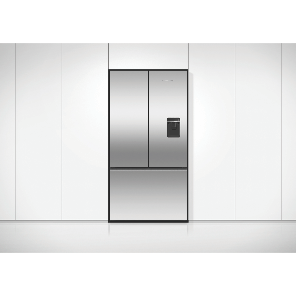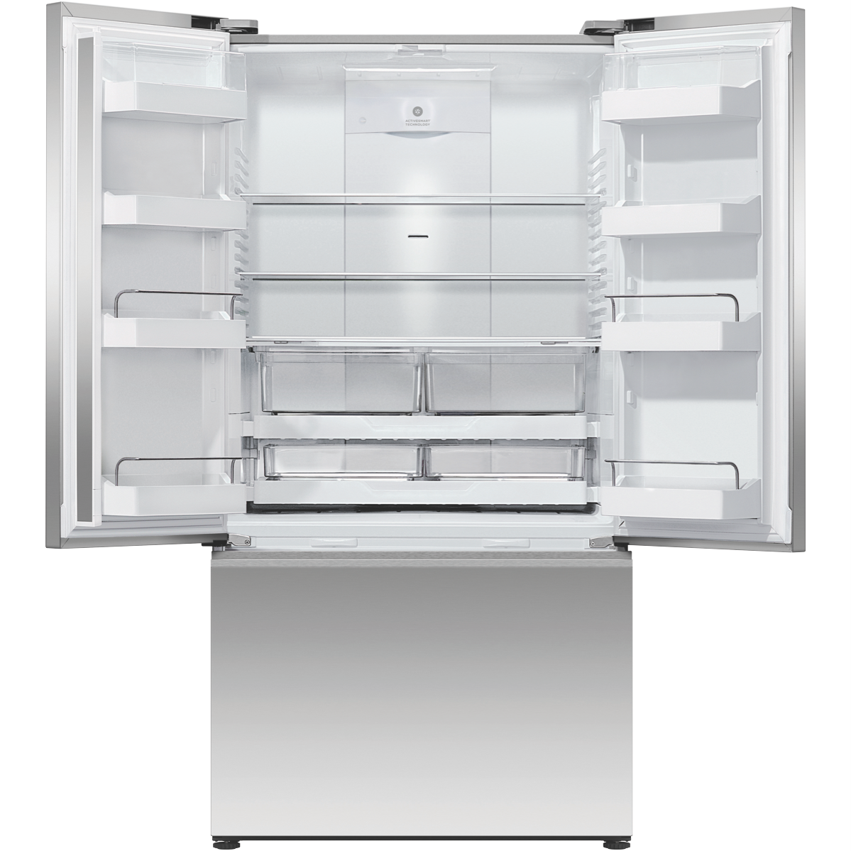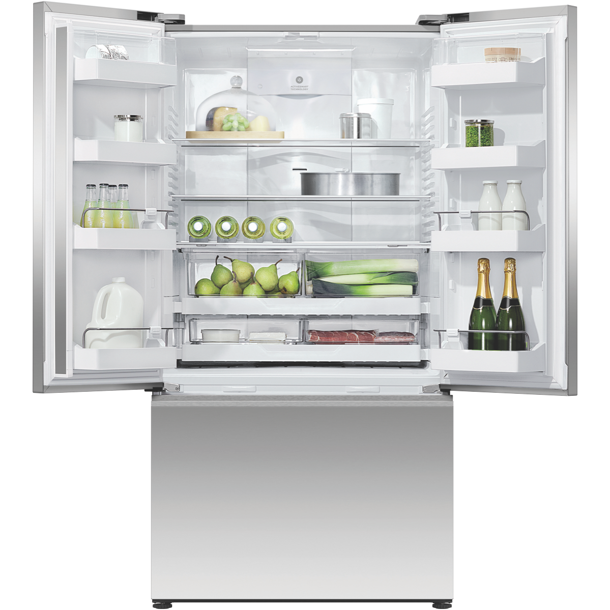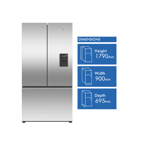 Bring stylish and spacious refrigeration to your kitchen with the Fisher & Paykel 569L French Door Fridge. This dual-door stainless steel refrigerator provides ample storage for all your fresh and frozen foods. The generous 614L total capacity includes a large 417L fridge compartment and 152L freezer. LED lighting illuminates the interior making it easy to find ingredients. ActiveSmart technology adapts to your usage patterns for optimized cooling and energy efficiency. Additional features like the automatic ice maker and Fast Freeze function add convenience to your daily life. With a width of 900mm height of 1790mm and depth of 695mm this fridge fits most standard kitchen spaces. The Fisher & Paykel Series 7 French door refrigerator runs quietly at 42 decibels and is rated for energy efficiency at 3.5 stars. It comes with Fisher & Paykel's 2 year manufacturer's warranty for peace of mind. The manufacturer's part number for this fridge is RF610ANUX5. Learn more about how this quality refrigerator can upgrade your kitchen.