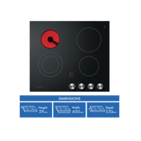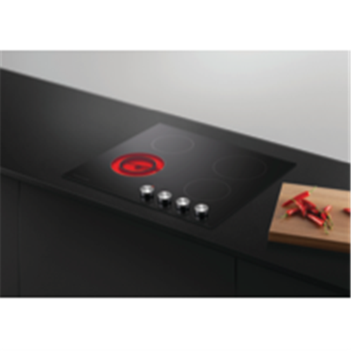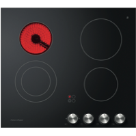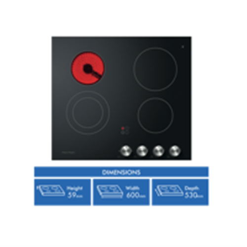 Cook up a storm with the sleek 60cm Fisher & Paykel Ceramic Electric Cooktop. This contemporary black ceramic glass cooktop blends beautifully into your kitchen while providing exceptional cooking control. Four cooking zones give you the flexibility to boil sauté stir fry or simmer several pots or pans at once. Dual elements allow you to switch between different heat levels going from a rolling boil to a gentle simmer in seconds. The easy to use knobs put you in command of your cooking while the ceramic glass surface wipes clean after use. At 600mm wide 530mm deep and just 59mm high this cooktop fits flush into your benchtop. With a 2 year manufacturer's warranty you can cook with confidence knowing Fisher & Paykel stand behind the quality of their products. The manufacturer's part number for this product is CE604CBX2. Bring home exceptional cooking control and versatility with the Fisher & Paykel 60cm Ceramic Electric Cooktop today.