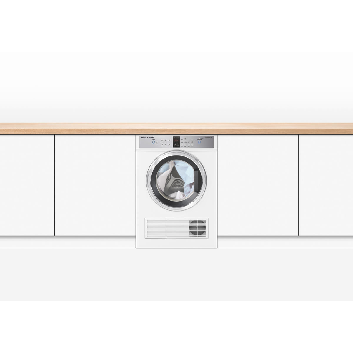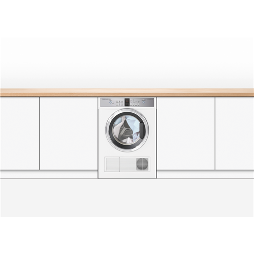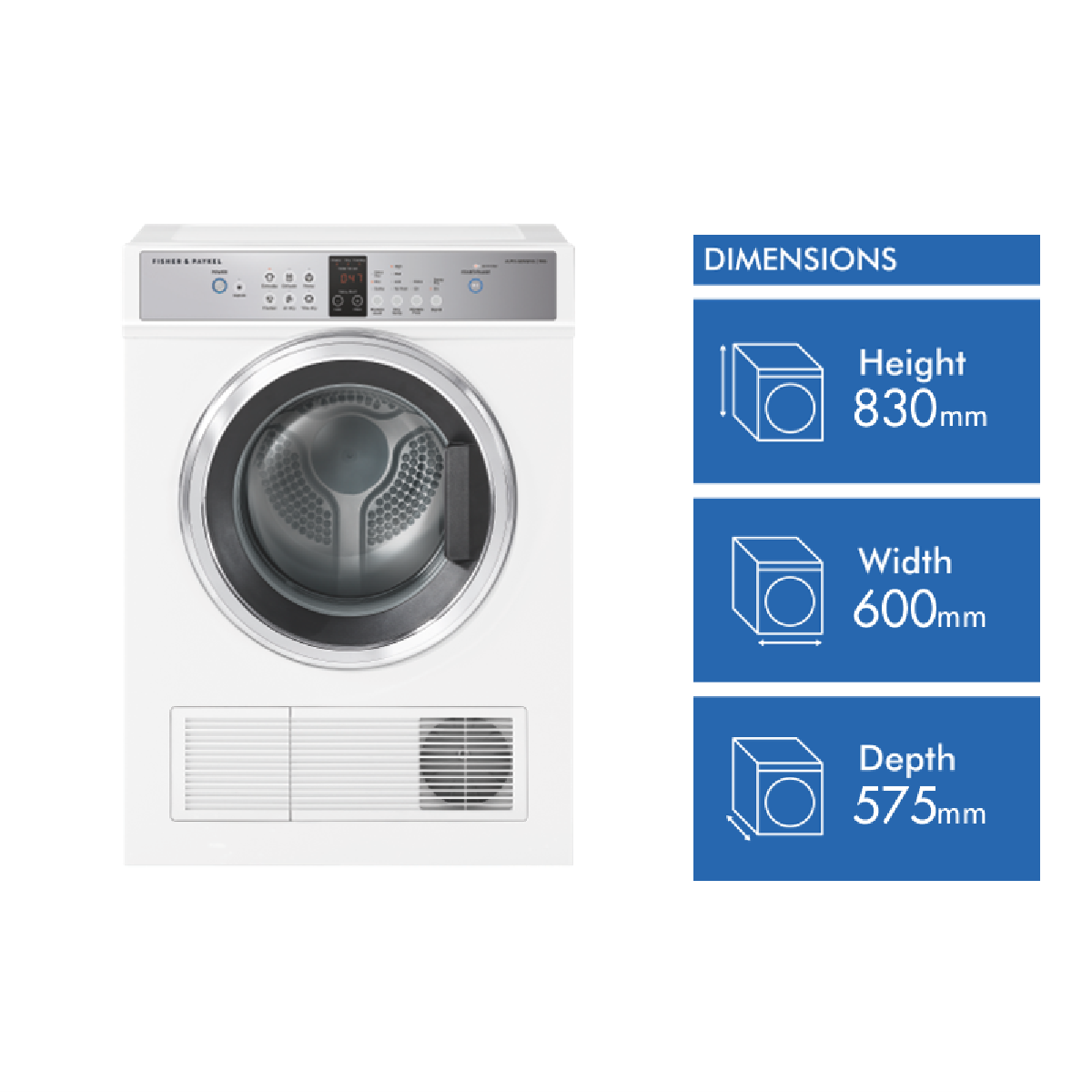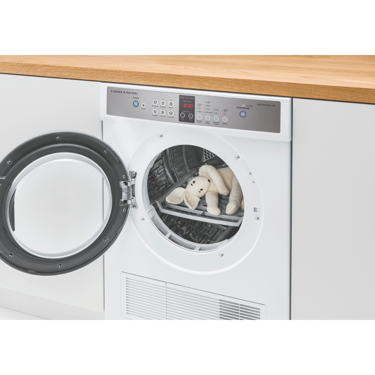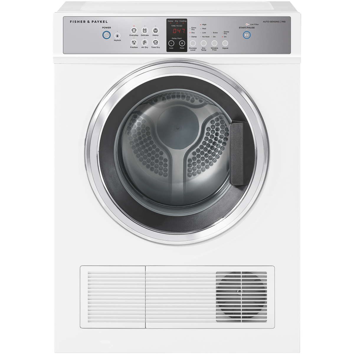 Spend less time waiting around for clothes to dry and more time doing the things you love with the Fisher & Paykel 7kg Sensor Dryer. This sleek white vented dryer offers an efficient drying solution for medium-sized loads of up to 7kg sensing moisture levels to prevent over-drying. With 6 drying programs including Everyday Heavy Delicate and Timed modes you can customize cycles to suit any fabric. The easy-to-use control panel lets you select 4 temperature levels 5 dryness settings and delay start so you can dry clothes at your convenience. Thanks to its compact 600mm width this dryer can be wall-mounted to maximize floor space. Quiet in operation at just 66dB this dryer also includes a handy drying rack for air drying delicates. Backed by Fisher & Paykel's 2 year warranty the 7kg Sensor Dryer combines smart drying technology with simple controls for fuss-free laundry day after day. The manufacturer's part number for this product is DE7060G2. Give your laundry routine an efficient upgrade with Fisher & Paykel s 7kg Sensor Dryer.