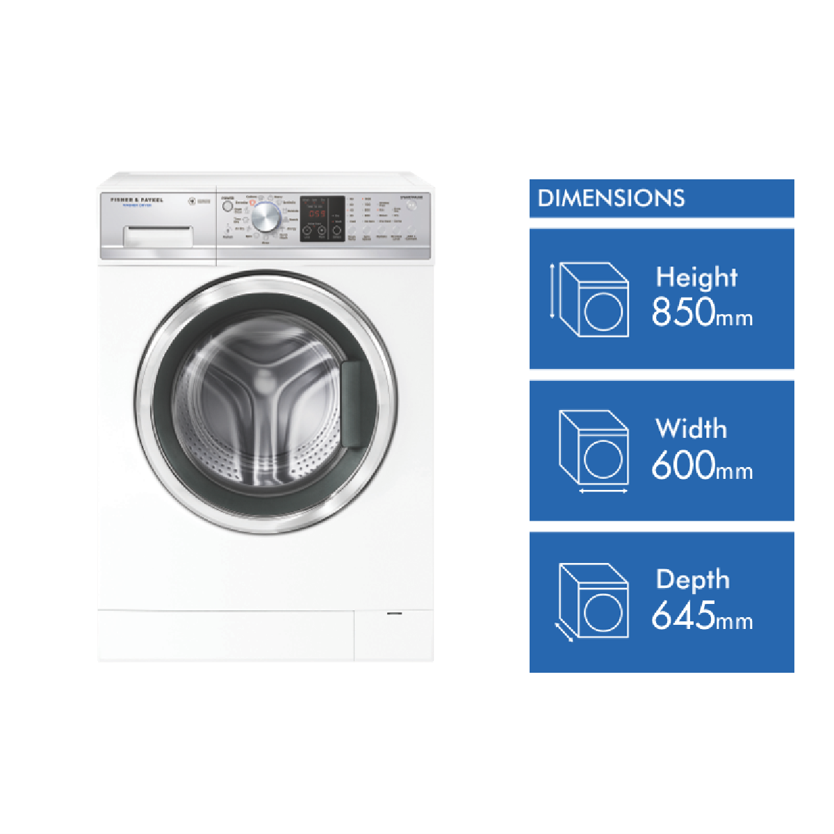 Achieve outstanding wash and dry results with the Fisher & Paykel 8.5kg-5kg Combo Washer Dryer. This front load washing machine comes in a stylish white finish and features SmartDrive technology for quiet operation and advanced fabric care. With a generous 8.5kg washing capacity and 5kg drying capacity it makes quick work of large loads. Choose from 10 washing programs like Allergy Delicate and Quick Wash. Vortex Wash and Continuous Wash & Dry provide added convenience. The 1400rpm max spin speed means you'll spend less time drying. This washing machine is also water efficient rated 5 stars with 61L per wash water usage. Enjoy the benefit of smart sensors that provide the optimal wash conditions for each load. The drying system uses a condenser for efficient moisture removal. Rated 4 stars for washing and 3.5 stars for drying this combo washer dryer will save you energy. Easy to install and covered by a 2 year manufacturer's warranty for peace of mind. The manufacturer's part number for this product is WD8560F1. Get this Fisher & Paykel combo washer dryer for high performance washing and drying.