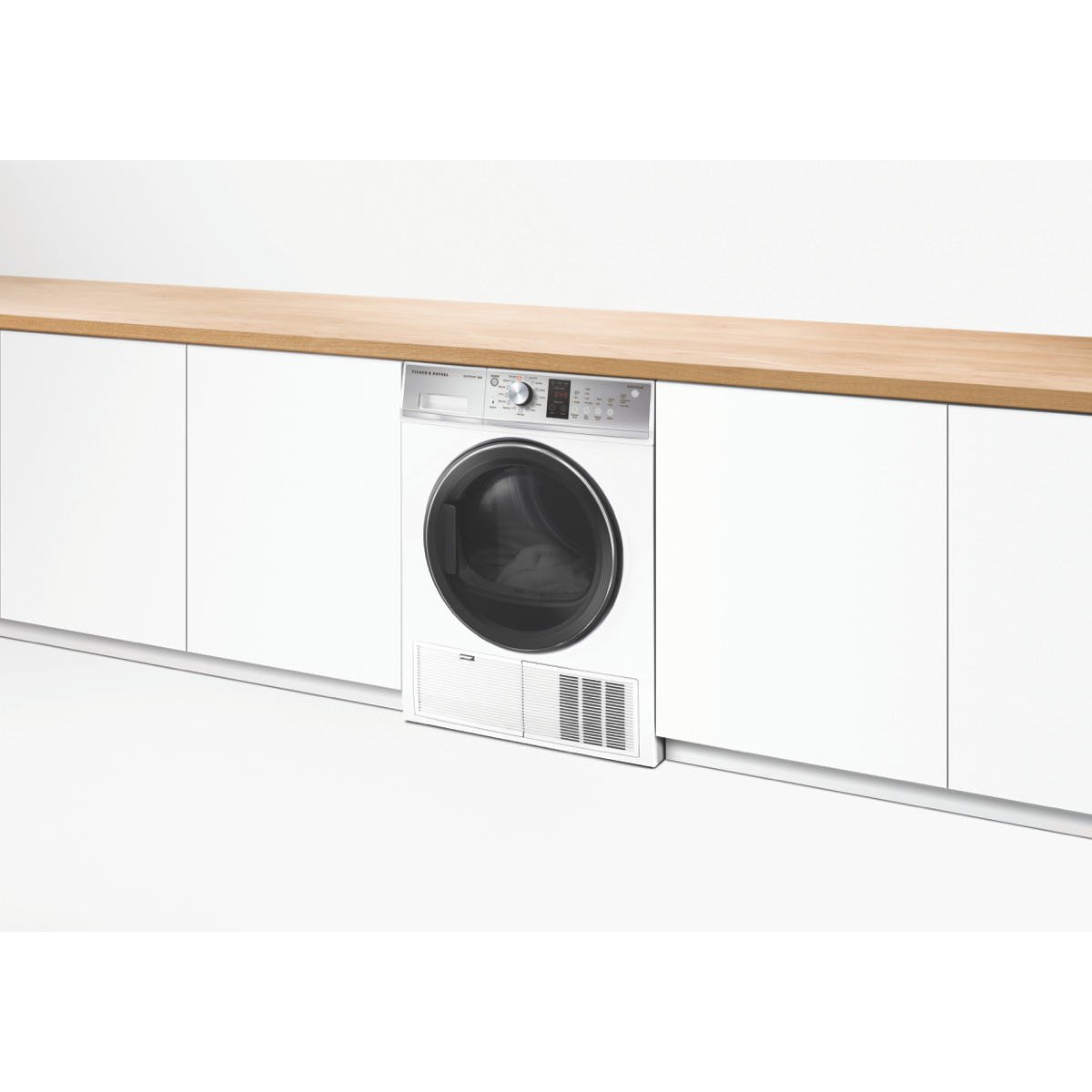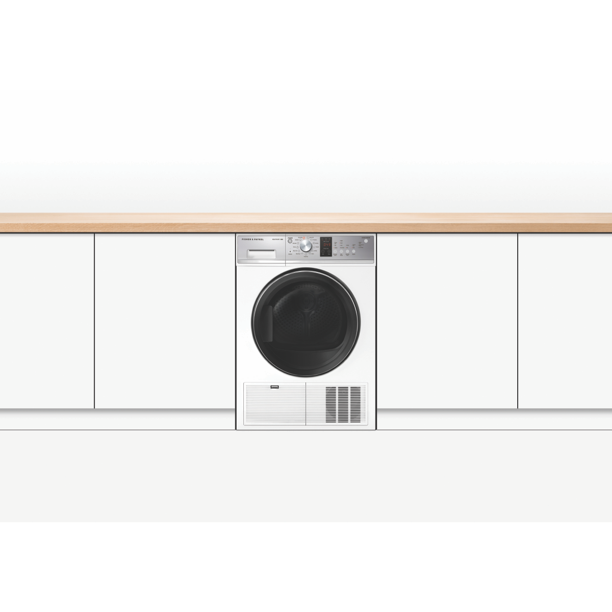 This Fisher & Paykel 8kg Heat Pump Dryer is the perfect addition to your laundry. With its 7 Star energy rating and 13 drying programs including Bulky Cottons Delicate Easy Iron and Wool this dryer adapts to all your clothing needs. The stainless steel drum gently dries up to 8kg of laundry while Auto-sensing prevents over-drying. Additional features like the drying rack multiple temperature settings and dryness levels give you maximum control over each cycle. At 850mm high 600mm wide and 650mm deep it fits most laundry spaces. The white finish blends seamlessly into your existing decor. With a 2 year manufacturer's warranty you can trust the durability of this dryer. The manufacturer's part number for this product is DH8060P3. See how this Fisher & Paykel clothes dryer can make laundry day easier.