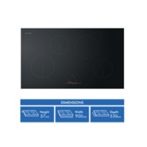 Bring the ultimate cooking experience into your home with the sleek modern Fisher & Paykel 90cm Induction Cooktop. This induction cooktop offers precision cooking with its responsive touch and slide controls allowing you to adjust heat instantly. The four induction zones heat up rapidly and cool down quickly when pans are removed while the nine power levels provide exceptional flexibility. Key features include automatic pan recognition power boost a timer and child lock for safety and convenience. With automatic switch off and residual heat indicators you can cook with confidence knowing this cooktop has your family's safety in mind. Crafted in a stylish black finish this cooktop integrates beautifully into contemporary kitchens. At 900mm wide it provides a spacious cooking surface to accommodate multiple pots and pans. The smooth glass surface makes cleaning effortless. Backed by Fisher & Paykel's 2 year warranty this induction cooktop delivers exceptional performance and longevity. Bring home gourmet results and energy efficiency with this feature-packed induction cooktop. The manufacturer's part number for this product is CI904CTB1. Contact us today to learn more about this induction cooktop.