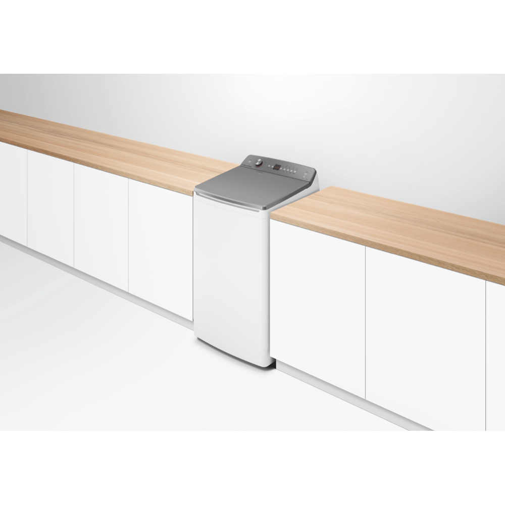 Only available at The Good Guys. With a 9kg capacity and efficient 4.5 star energy rating the Fisher & Paykel Series 5 WL9058G1 top loader washing machine makes light work of the weekly wash. The large 9kg wash capacity caters to medium-sized households fitting a typical load of towels or sheets with ease while the Eco wash setting helps conserve water and energy. The intuitive SmartTouch control panel allows you to precisely adjust wash settings like temperature and spin speed up to 750rpm for each load. Specialised cycles like Delicate Wool and Hygiene ensure your clothes receive the right level of care. Features like the Soft Close lid Advanced Out of Balance detection and Pillow Drum design provide added convenience and care for fabrics. With 14 flexible wash programs and options like Delay Start Extra Rinse and Soak you can customise every wash to suit your needs. In classic Fisher & Paykel style the WL9058G1 sports a stylish white finish that will complement any laundry. Covered by a 2 year manufacturer's warranty for peace of mind the Fisher & Paykel WL9058G1 makes washing simple for busy households. The manufacturer's part number for this product is WL9058G1. For a top loader that combines efficiency with flexibility look no further than the Fisher & Paykel Series 5 - 9kg washing machine.