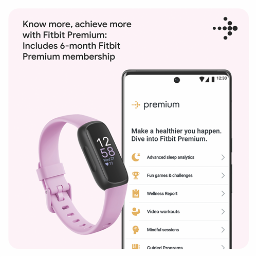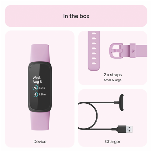 Feel inspired to accomplish your fitness and health related goals with the Fitbit Inspire 3 Lilac Bliss/Black FB424BKLV-FRCJK. Track your vigorous exercise routines and general wellbeing is as simple as wearing the Inspire 3 daily; this fitness band monitors and collects a wide variety of movements body actions and body functions and presents all this information for you to review. The Daily Readiness Score lets you know if your body is ready for another workout or it needs more time to recover so you can adjust your physical activity accordingly(1). Relieve pent up stress and general uneasiness using the included Guided Breathing Sessions and Stress Management Score; these both work to indicate your current stress levels and displays what your body is feeling alongside offering healthier ways to handle pent up stress. You can always track your performance while your awake but it all starts from a great night s sleep. While wearing the Fitbit Inspire 3 to bed you can track your Sleep Score light deep and REM sleep sleeping heart rate and your consistent sleeping schedule to see if you really are getting a good night's sleep. Measure your heart rate during exercise to see if you're working out at your best during fat burn cardio or peak zones then adjust your efforts accordingly to get the best out of your own performance. All these features are available for up to ten days without a single recharge(2) the Inspire 3 fitness tracker is always available here to assist your daily exercise and health needs. Disclaimers: (1) Fitbit Premium membership required to access Daily Readiness Sleep Profile and most in-app mindfulness sessions. Premium content recommendations are not available in all locales and may be in English only. (2) Battery life varies with use & other factors.