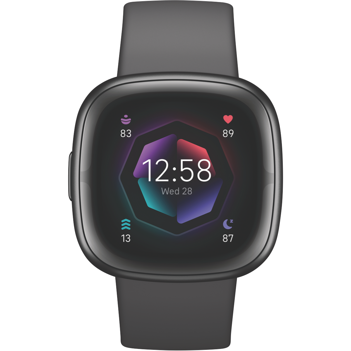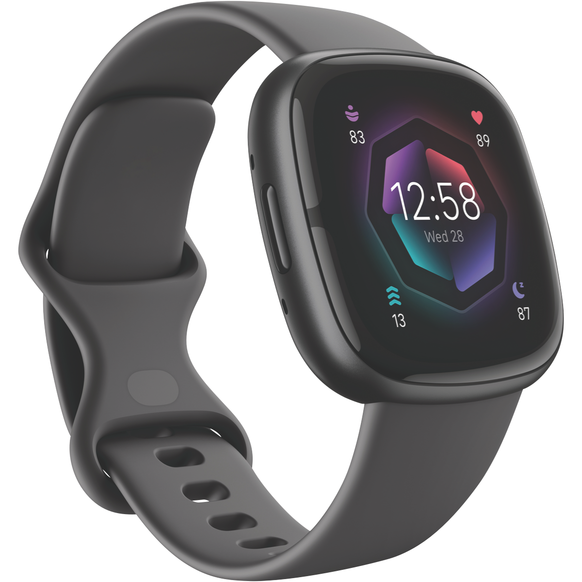 Live a healthy active lifestyle using the advanced sensors in-depth monitoring and smartwatch capabilities of the Fitbit Sense 2 Graphite/Graphite FB521BKGB-FRCJK. Get a good night's sleep while having more energy to get through the busy following day with the continuous EDA sensor; it sends smart notifications based on your current signs of stress to and provides recommendations for relieving stress through exercise deep breathing & more. Accompanying the EDU sensor is the cEDU sensor which identify signs of excitement stress caffeine and more so you are informed and can create better decisions to control your stress levels during particular moments(1). Using the Sense 2's Fitness Tracker Sleep Profile feature you can learn and develop practices on how to receive a better night's sleep. Also see a personalised analysis of your sleep each month so you can pinpoint areas you can focus on improving. Monitor your general well-being using the tracking sensors available for your key health metrics; see your blood oxygen (SpO2) & heart rate variability alongside using the ECG app that measures your heart rhythm for atrial fibrillation(2). Easily wear the Fitbit Sense 2 all day and all night without any discomfort its lightweight and thin design sits naturally on your wrist providing the comfortability to complete workouts take sleeps with and use every day. Smartphone features such as the Amazon Alexa voice assistant(3) Google Maps & Google Wallet on wrist Bluetooth calls & texts smartphone notification and more are all available on the Fitbit Sense 2. Disclaimers: (1) Workouts may be available in English only. (2) Data rates may apply. Google apps are not available in all countries or languages. (3) Voice assistant features may vary see fitbit.com/voice.