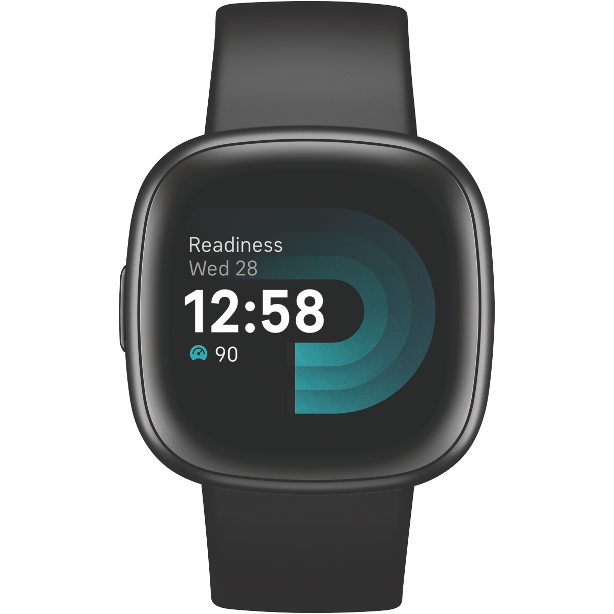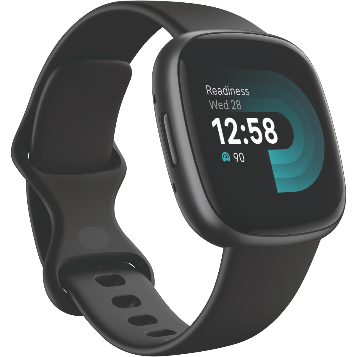 Designed for the active lifestyle is the Fitbit Versa 4 Black/Graphite FB523BKBK-FRCJK is made to record motivate and help you achieve your workout and fitness goals. The Daily Readiness Score lets you know if your body is ready for another workout or it needs more time to recover so you can adjust your physical activity accordingly(1). See if you are really performing at your best using Active Zone Minutes; utilising 40+ exercise modes and the built-in GPS it monitors how consistent the efforts you are performing are in real time. Discomfort shouldn't get in the way of achieving workouts; the super-thin and lightweight design sits naturally on the wrist so working out sleeping and generally using the Versa 4 is never an issue. Take advantage of hundreds of workouts from Fitbits partners such as Aaptiv Daily Burn & more while viewing real-time statistics during your workouts(2). Relieve pent up stress and general uneasiness using the included Guided Breathing Sessions and Stress Management Score; these both work to indicate your current stress levels and displays what your body is feeling alongside offering healthier ways to handle pent up stress. Smartphone features such as the Amazon Alexa voice assistant(3) Google Maps & Google Wallet on wrist Bluetooth calls & texts smartphone notifications and more are all available on the Fitbit Versa 4. Disclaimers: (1) Daily Readiness Sleep Profile Snore & Noise Detect & most mindfulness sessions require a Fitbit Premium membership. (2) Data rates may apply. Google apps are not available in all countries or languages. (3) Voice assistant features may vary see fitbit.com/voice.