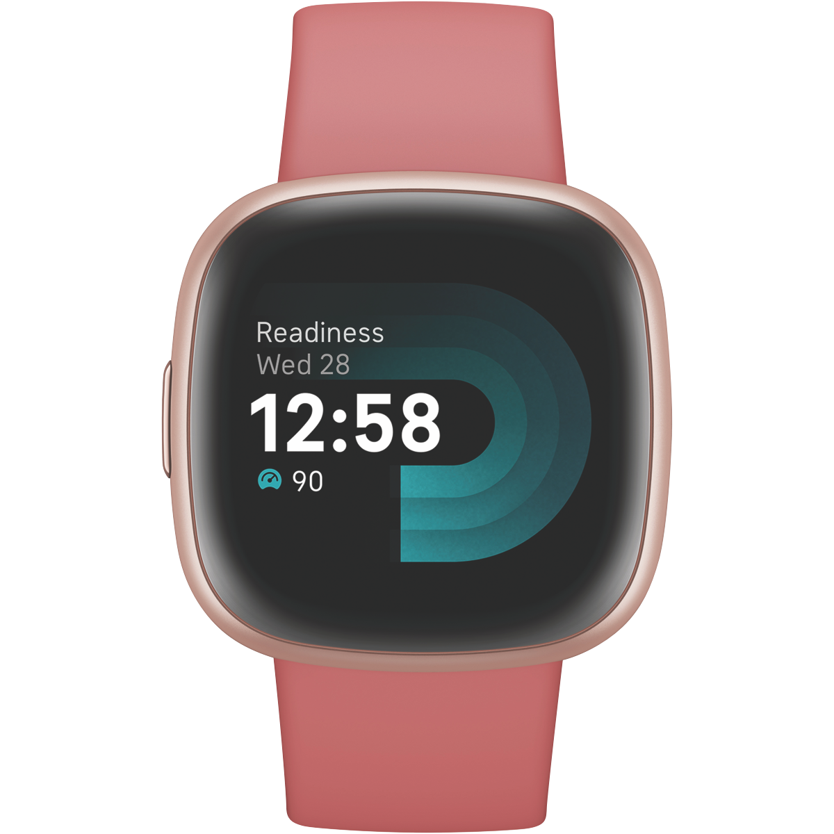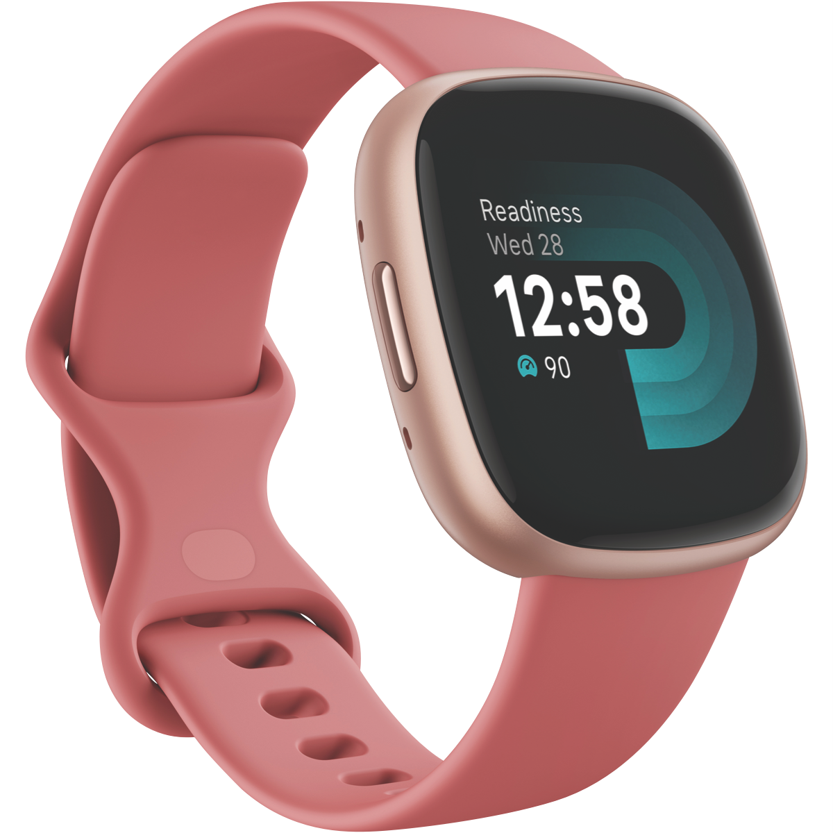 Designed for the active lifestyle is the Fitbit Versa 4 Pink Sand/Copper Rose Aluminium FB523RGRW-FRCJK is made to record motivate and help you achieve your workout and fitness goals. The Daily Readiness Score lets you know if your body is ready for another workout or it needs more time to recover so you can adjust your physical activity accordingly(1). See if you are really performing at your best using Active Zone Minutes; utilising 40+ exercise modes and the built-in GPS it monitors how consistent the efforts you are performing are in real time. Discomfort shouldn't get in the way of achieving workouts; the super-thin and lightweight design sits naturally on the wrist so working out sleeping and generally using the Versa 4 is never an issue. Take advantage of hundreds of workouts from Fitbits partners such as Aaptiv Daily Burn & more while viewing real-time statistics during your workouts(2). Relieve pent up stress and general uneasiness using the included Guided Breathing Sessions and Stress Management Score; these both work to indicate your current stress levels and displays what your body is feeling alongside offering healthier ways to handle pent up stress. Smartphone features such as the Amazon Alexa voice assistant(3) Google Maps & Google Wallet on wrist Bluetooth calls & texts smartphone notifications and more are all available on the Fitbit Versa 4. Disclaimers: (1) Daily Readiness Sleep Profile Snore & Noise Detect & most mindfulness sessions require a Fitbit Premium membership. (2) Data rates may apply. Google apps are not available in all countries or languages. (3) Voice assistant features may vary see fitbit.com/voice.