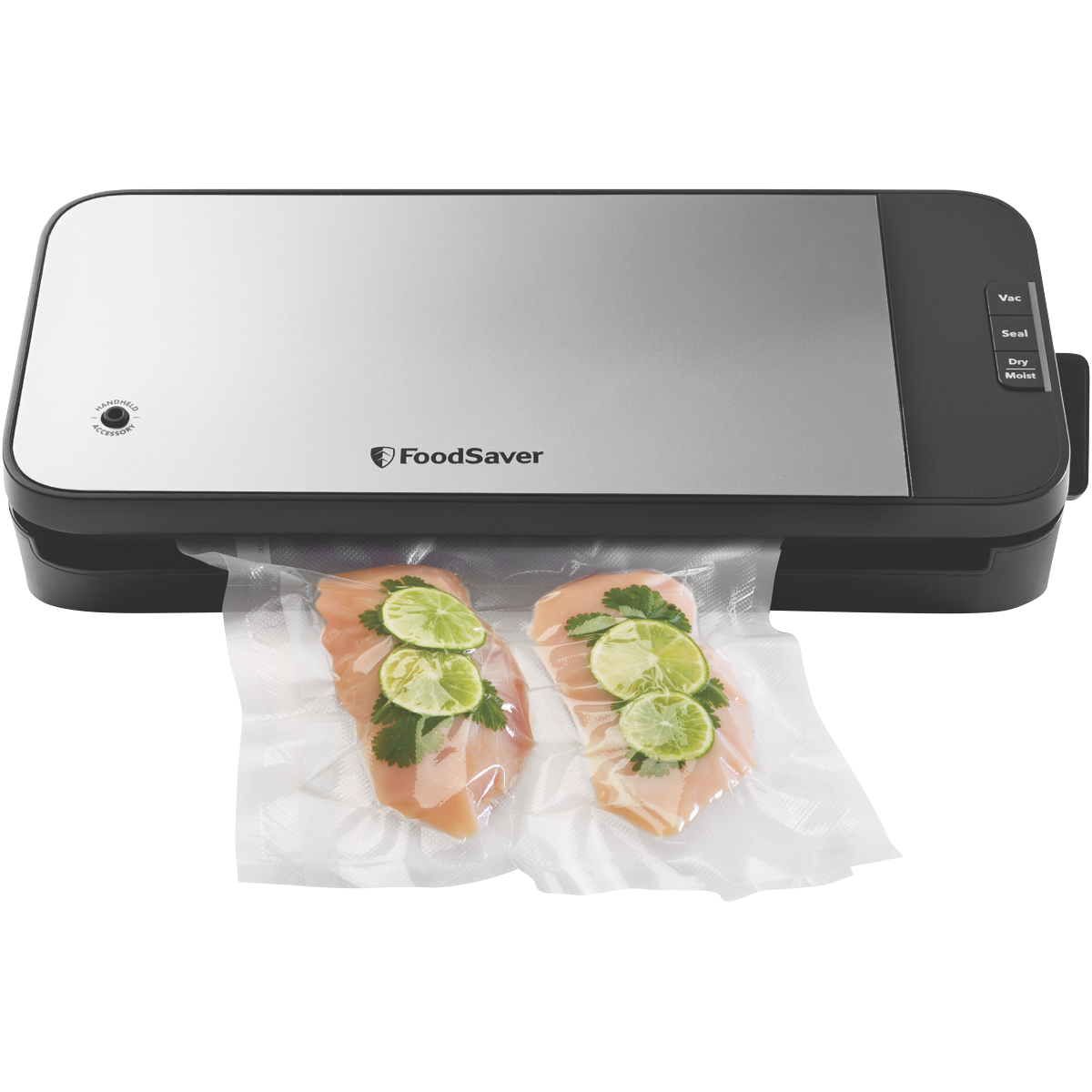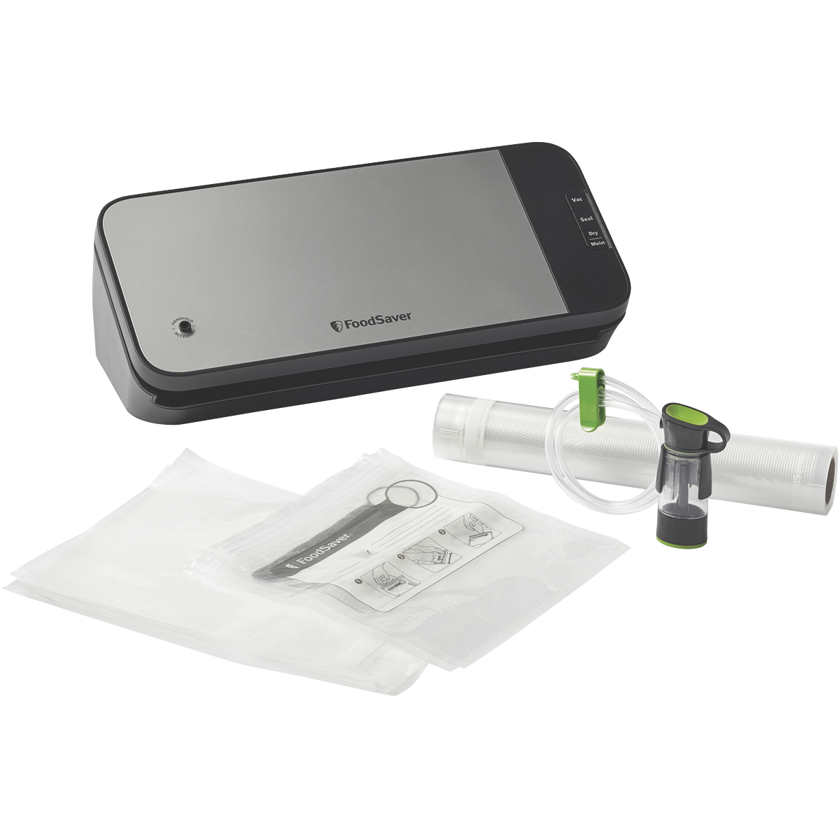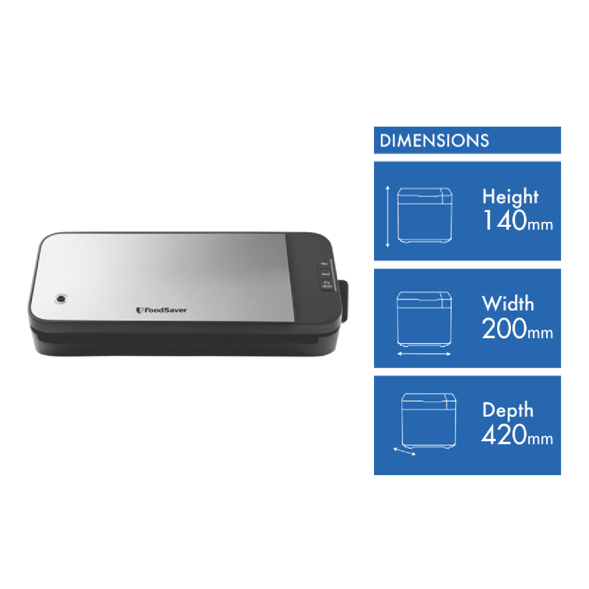 The FoodSaver Cut and Seal Vacuum Sealer makes preserving your food simple and easy. With two food settings for moist and dry foods this vacuum sealer features one-touch lever operation for quick and convenient sealing. The built-in roll storage and cutter allows you to easily cut bag material to the desired size reducing bag waste. The angled seal strip design provides a secure airtight seal to lock in flavor and extend food shelf life. Compact in size yet powerful in performance this 140mm high x 200mm wide x 420mm deep vacuum sealer enables you to keep your food fresher for longer. With less bag waste yielding more bags per roll you can save time and money while ensuring your food stays fresh. Backed by a 2 year manufacturer's warranty the FoodSaver Cut and Seal Vacuum Sealer delivers exceptional vacuuming and sealing so you can keep your food fresh and full of flavor. The manufacturer's part number for this product is VS2198. Enhance your food storage with the FoodSaver Cut and Seal Vacuum Sealer today.